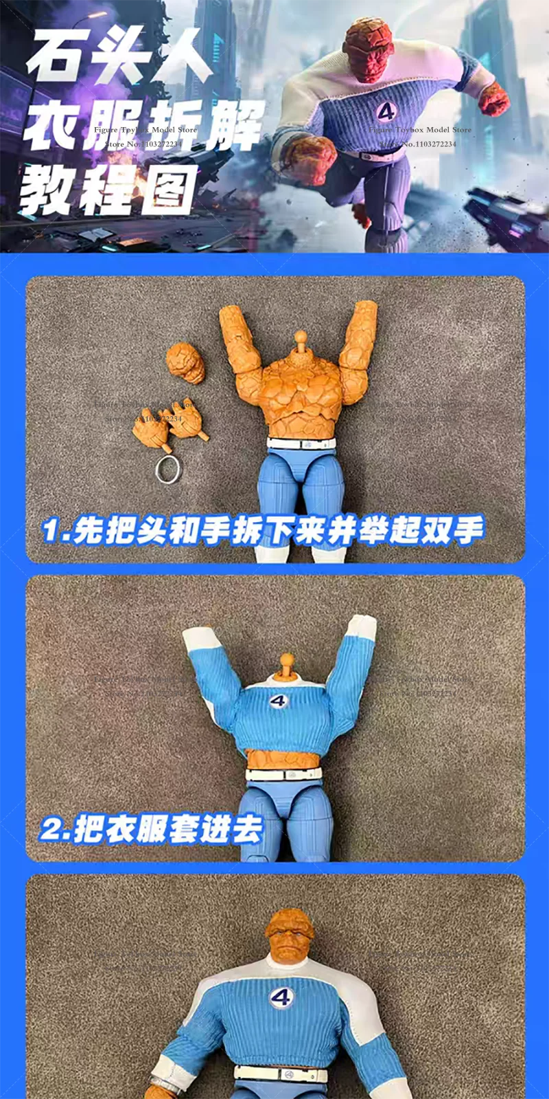 1/12 Comic Fantastic 4 Thing Man Action Figure Blue White Mini Sweater Top Toys Clothes Accessory For 6" Ml Soldier Decoration