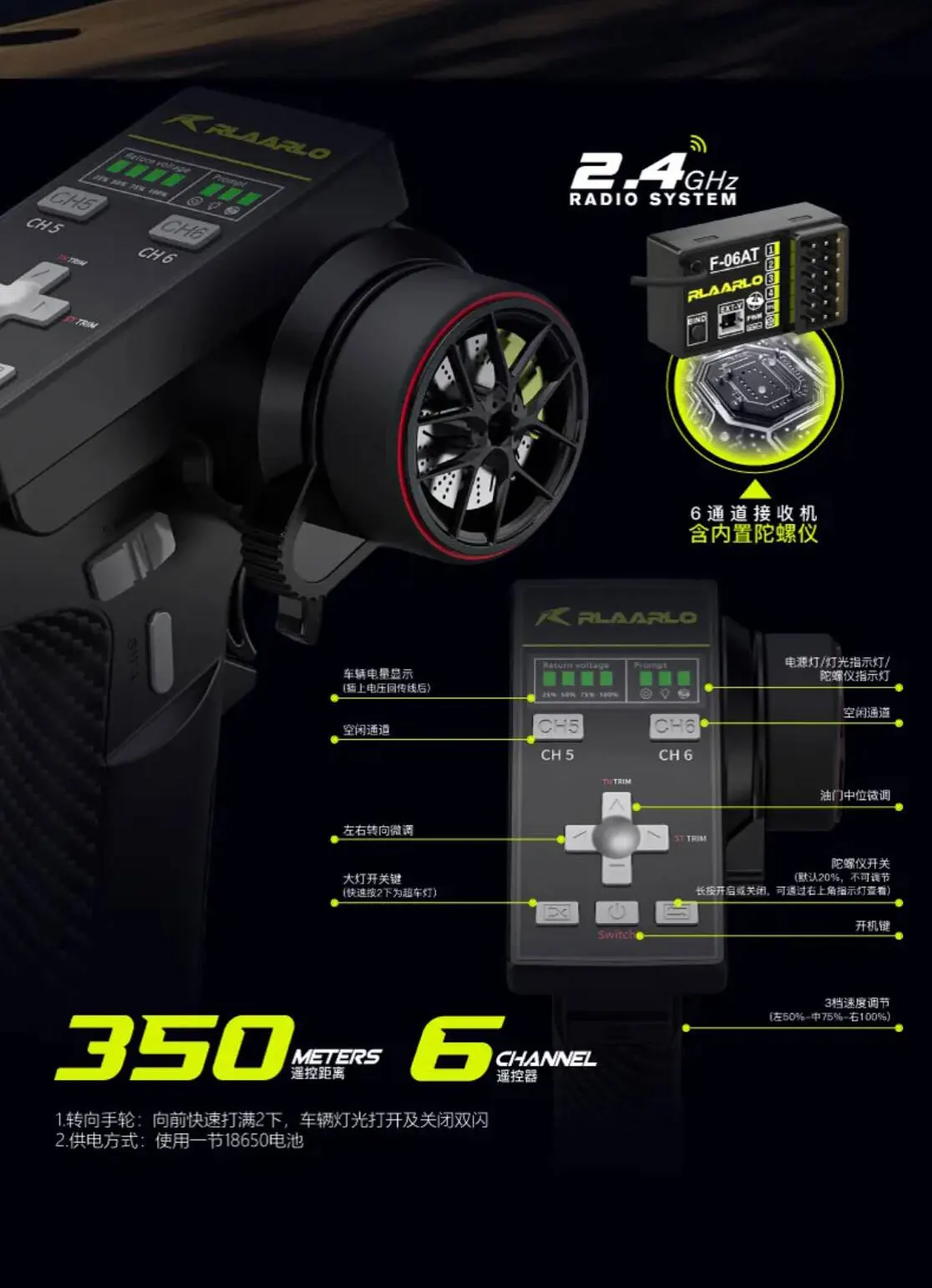 Пълното предавателно съотношение на дросела и управлението са точно като шофиране на истинска кола. 2.4G технологията за дистанционно управление поддържа мултиплейър състезания. Силна защита от смущения и стабилен сигнал.