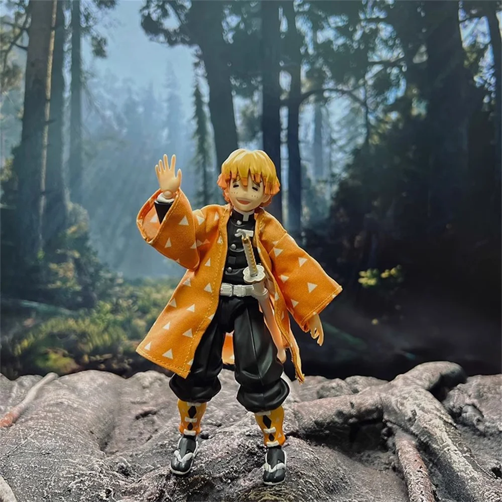 1/12 Мащаб Demon Slayer Мъжки герой Агацума Зеницу, платнено жълто дълго палто, подходящо за 6-инчова FIGMA екшън фигурка, тяло