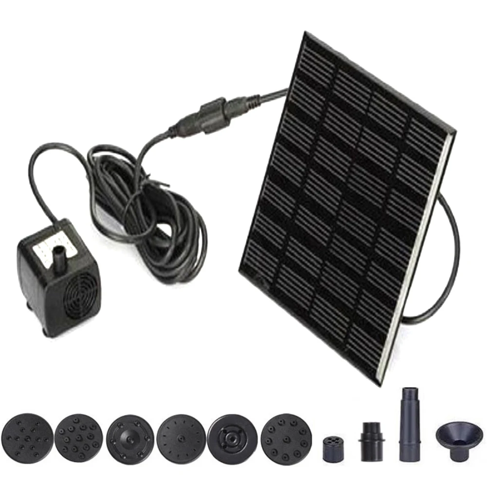 1.2W слънчева помпа за фонтан 200L/h с 6 дюзи, захранвана от слънчева енергия, слънчева помпа за фонтан, слънчева помпа за езерце за водни елементи на открито