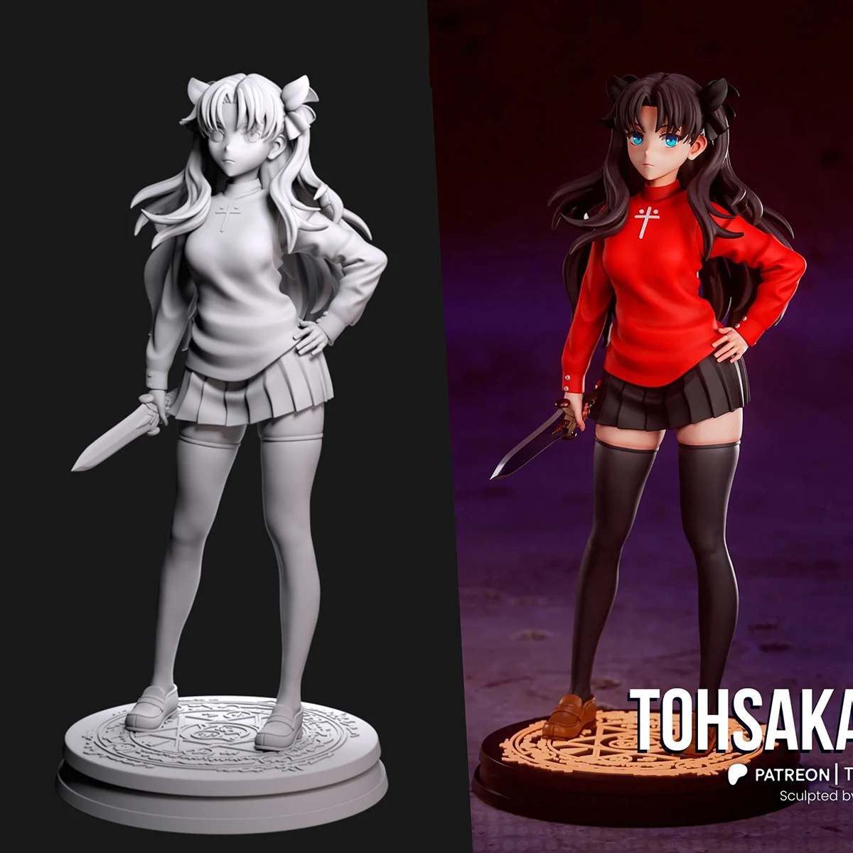 18 см Fate Tohsaka Rin Resin Gk Kit Небоядисана сива фигурка Несглобена 3D печат Миниатюрна статуя Направи си сам Аниме Кукла Модел Подаръци
