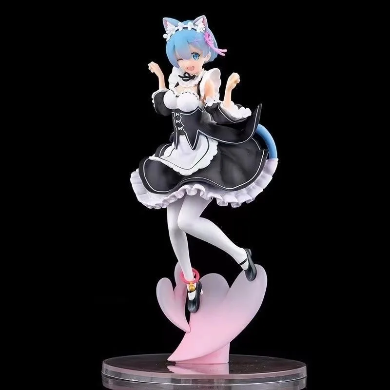 21 см Прислужница Синя коса Котешки уши Сладко момиче пола Аниме момиче Фигурка Екшън фигурка за възрастни Колекционерски модел кукла