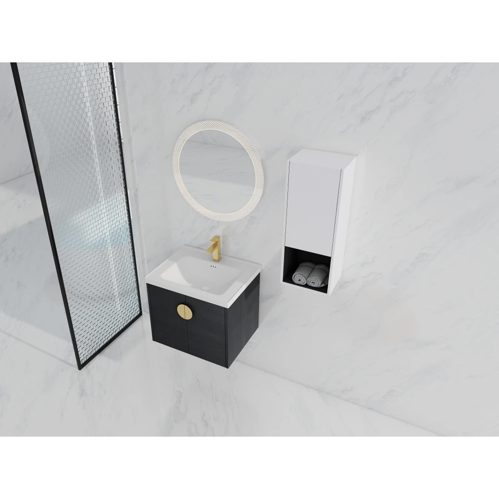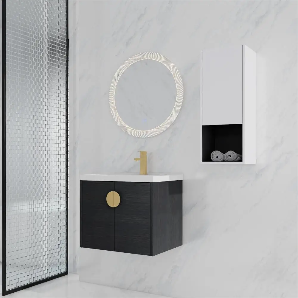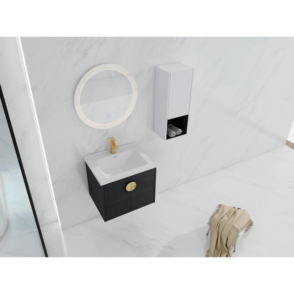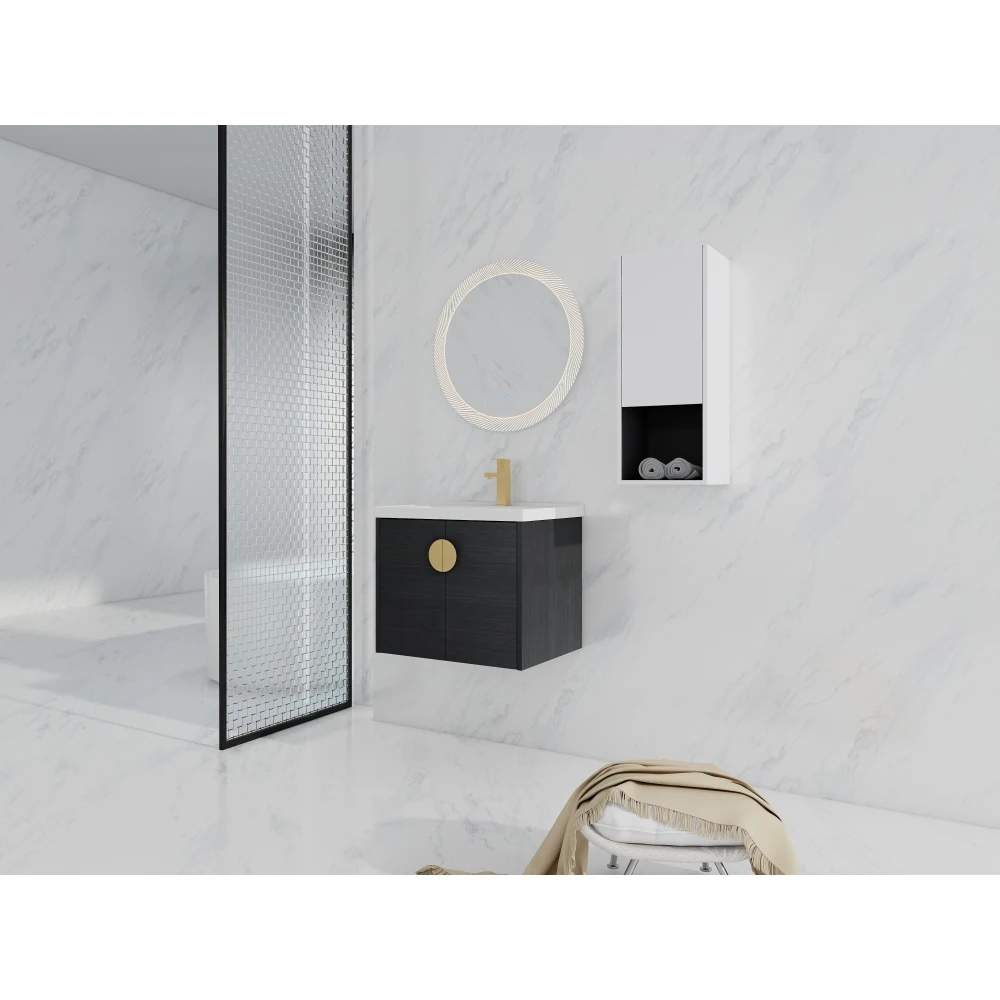 Стенният страничен шкаф за баня ефективно използва пространството със своя елегантен дизайн, освобождавайки площ на пода в компактни бани. Внимателно проектираното вътрешно пространство и отворените рафтове могат да съхраняват подредено ежедневни принадлежности като шампоан и душ гел, което улеснява изваждането им, като същевременно насърчава лесното почистване и поддържането на чиста среда в банята.