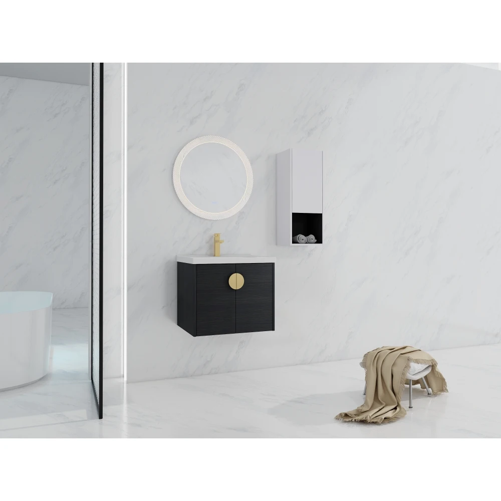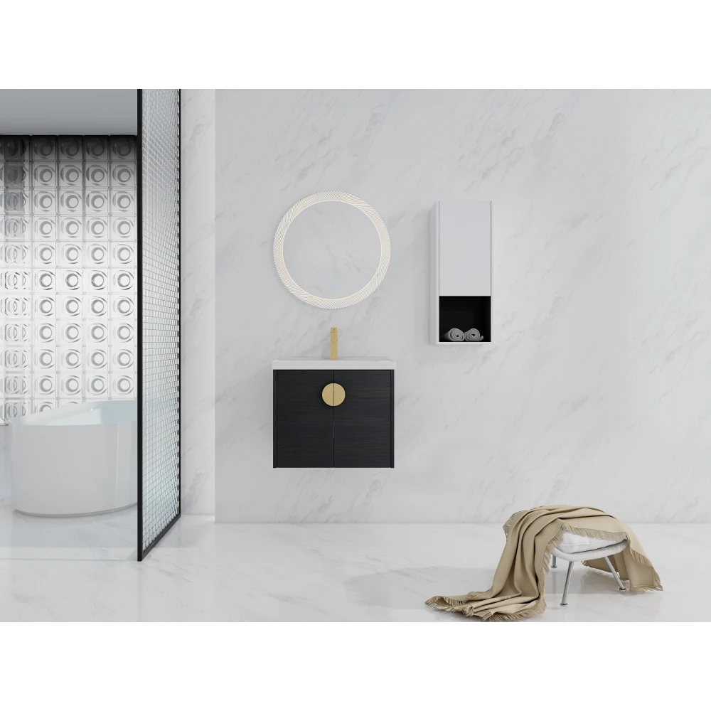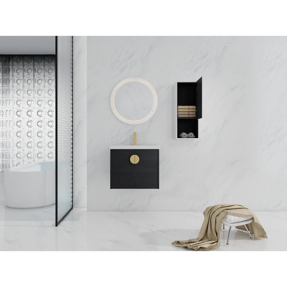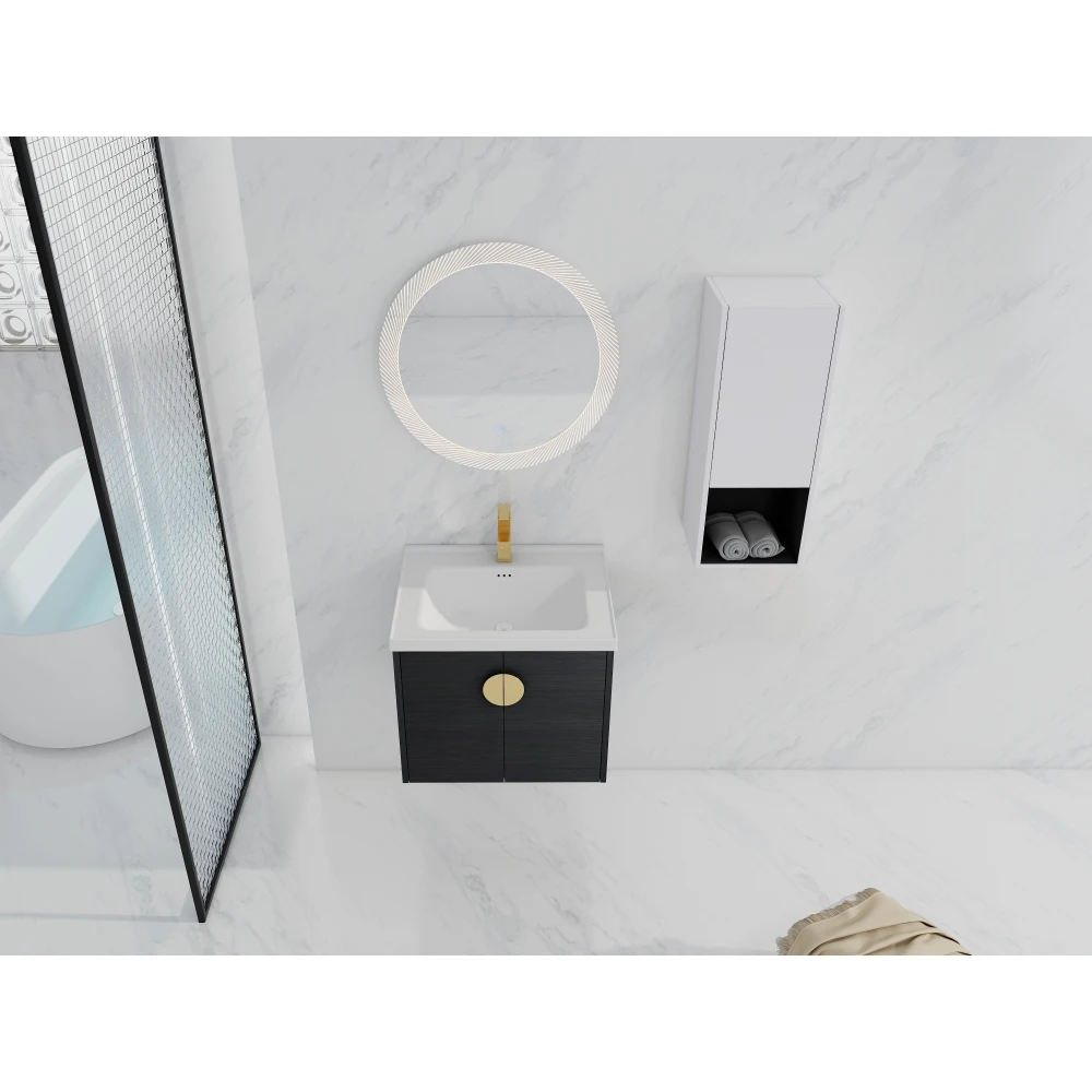 Стенният страничен шкаф за баня ефективно използва пространството със своя елегантен дизайн, освобождавайки площ на пода в компактни бани. Внимателно проектираното вътрешно пространство и отворените рафтове могат да съхраняват подредено ежедневни принадлежности като шампоан и душ гел, което улеснява изваждането им, като същевременно насърчава лесното почистване и поддържането на чиста среда в банята.