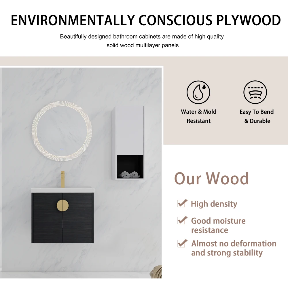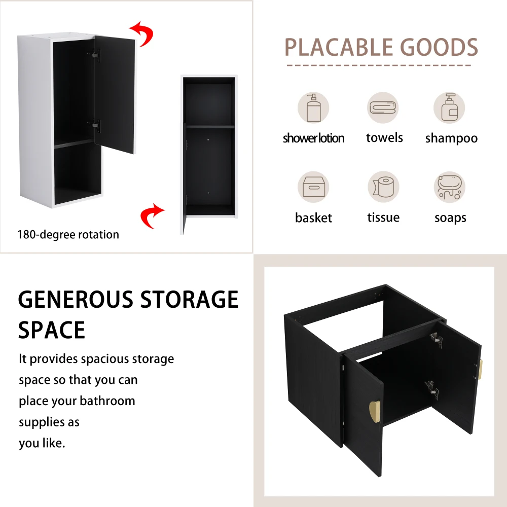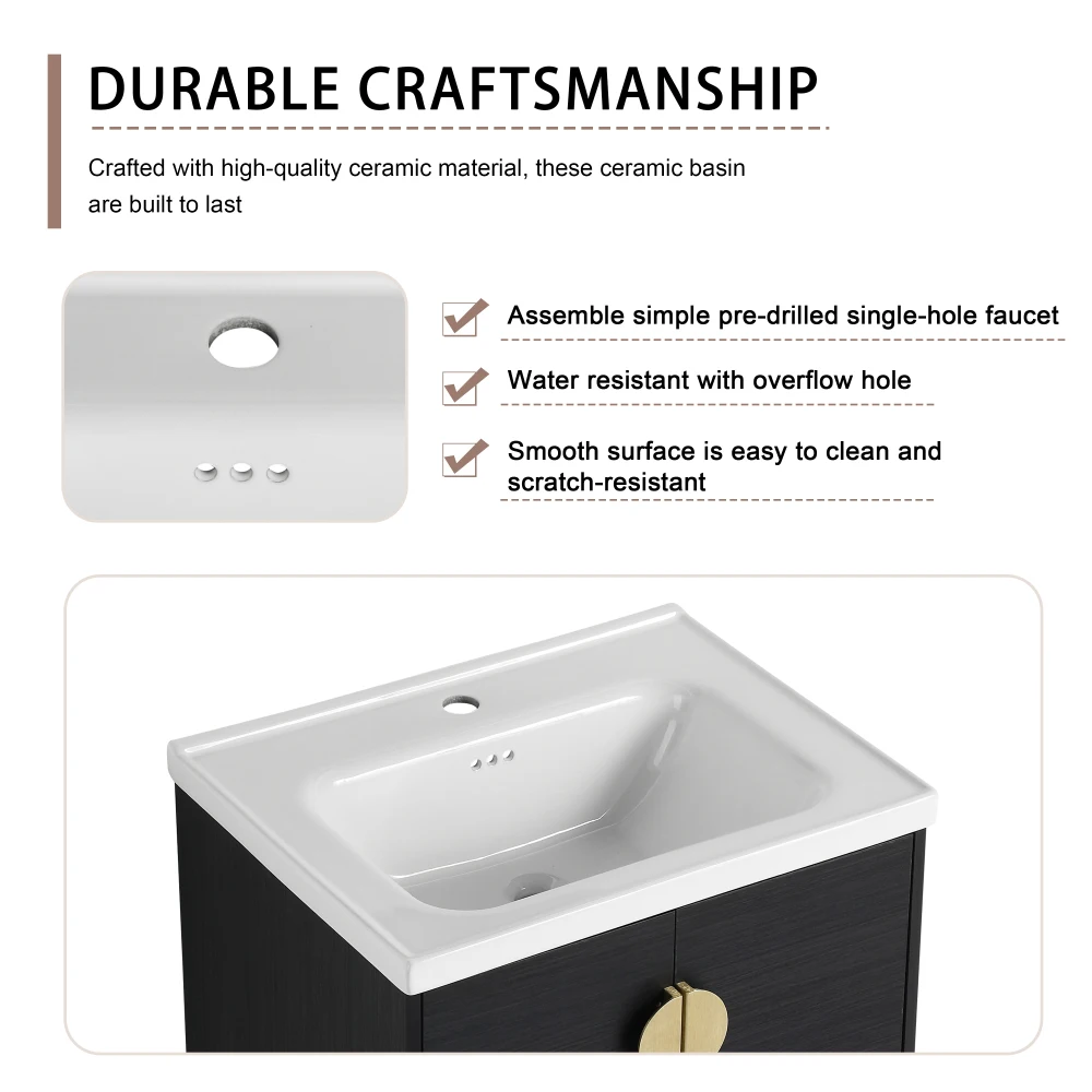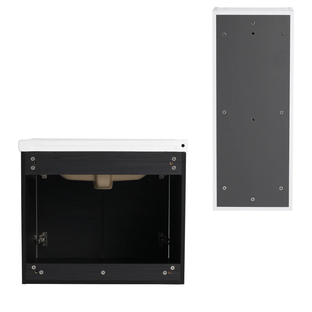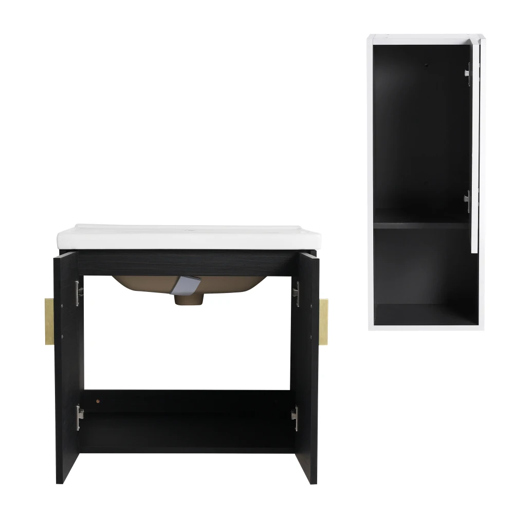 24" стенен шкаф за баня с керамична мивка и страничен шкаф, врати с плавно затваряне, комбиниран шкаф (KD-опаковка)