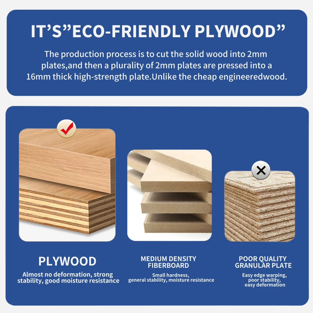 Основата за тоалетка е изработена от висококачествен шперплат, като повърхностният материал е меламин, устойчив на надраскване и вода, който е проектиран не само да издържа на влага, но и да се почиства и поддържа лесно.