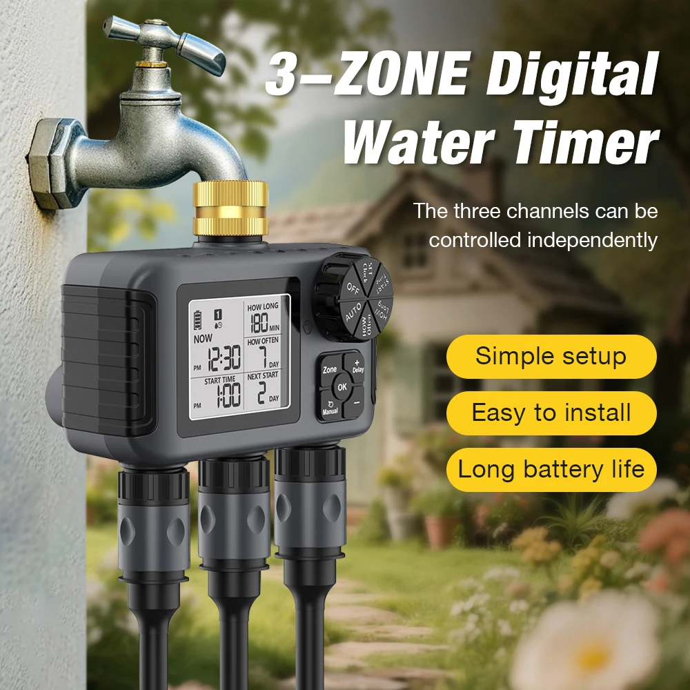 Тип : Градински таймери за поливане, Градински таймер за поливане, Таймер за поливане с 3 изхода