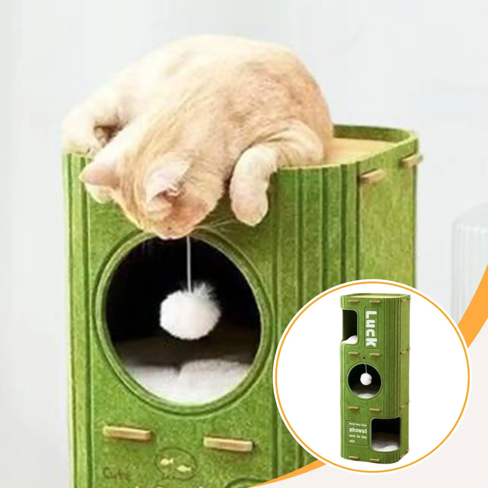 【Комфорт и гъвкавост с 3 слоя】: Тази 3-слойна филцова къщичка за котки предлага чудесна комбинация от почивка и игра, осигурявайки на вашия котешки приятел обособено място за дрямка и дейности.