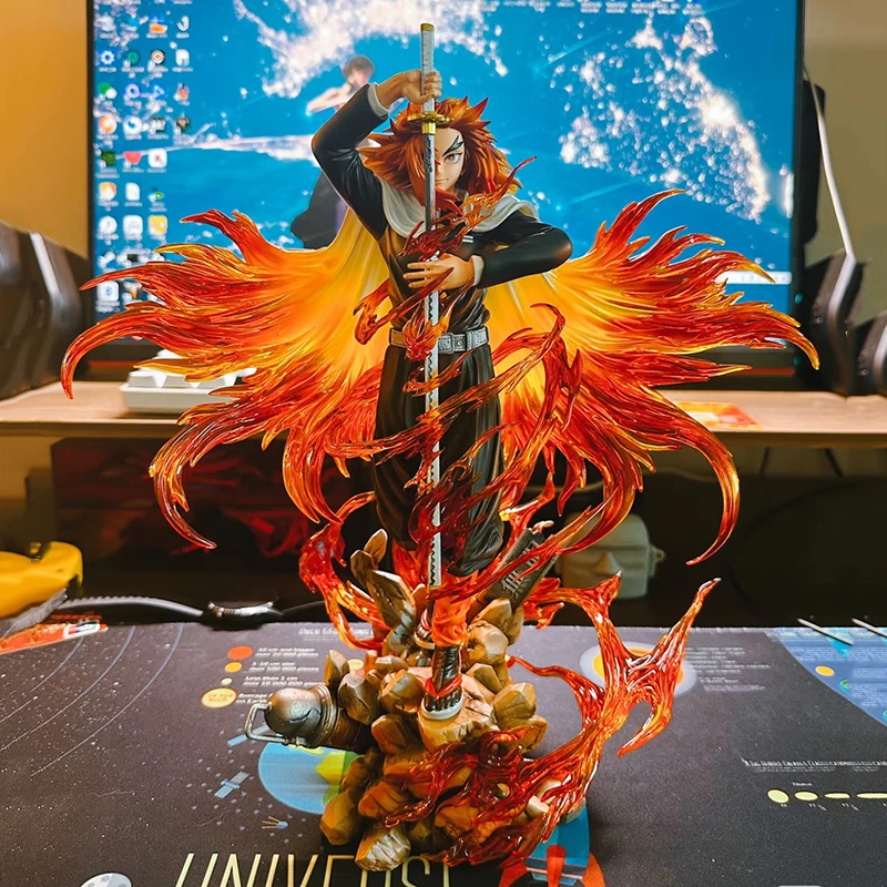 30 см аниме фигурка на убиец на демони, фигурка Rengoku Kyoujurou, пламък, Hashira, модел, PVC настолна статуетка, колекция, играчки за рожден ден, подаръци