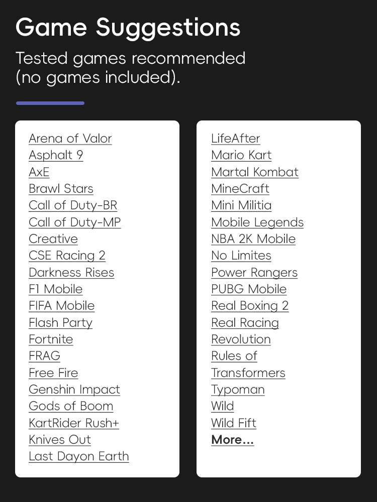Provides a curated list of tested and compatible games for the best gaming experience. (Note: The controller and its app do not include any game content.)