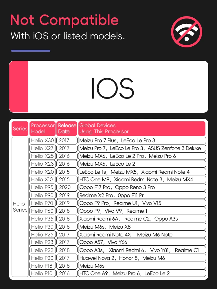 Not compatible with iOS devices or certain models (refer to the compatibility list for details).