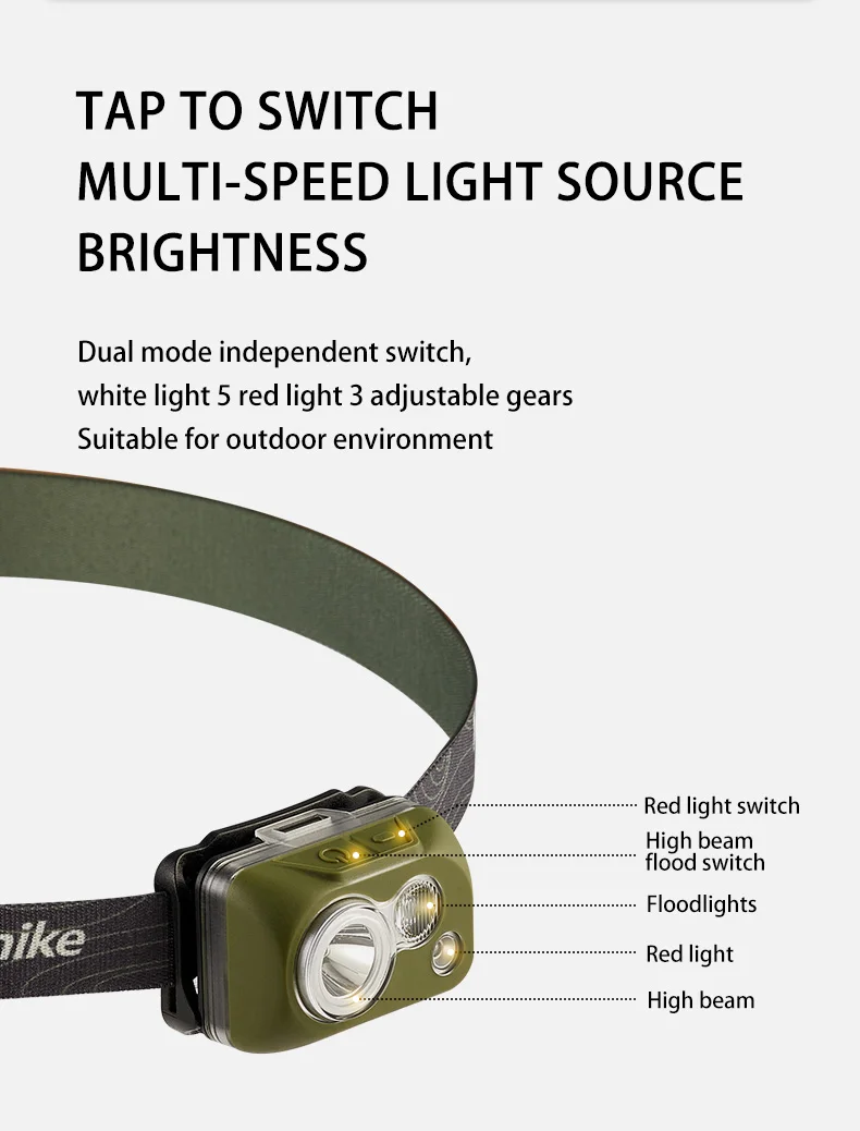Naturehike Челник с висока водоустойчивост, външен челник, туризъм, алпинизъм, бягане, катерене, супер ярки светлини
