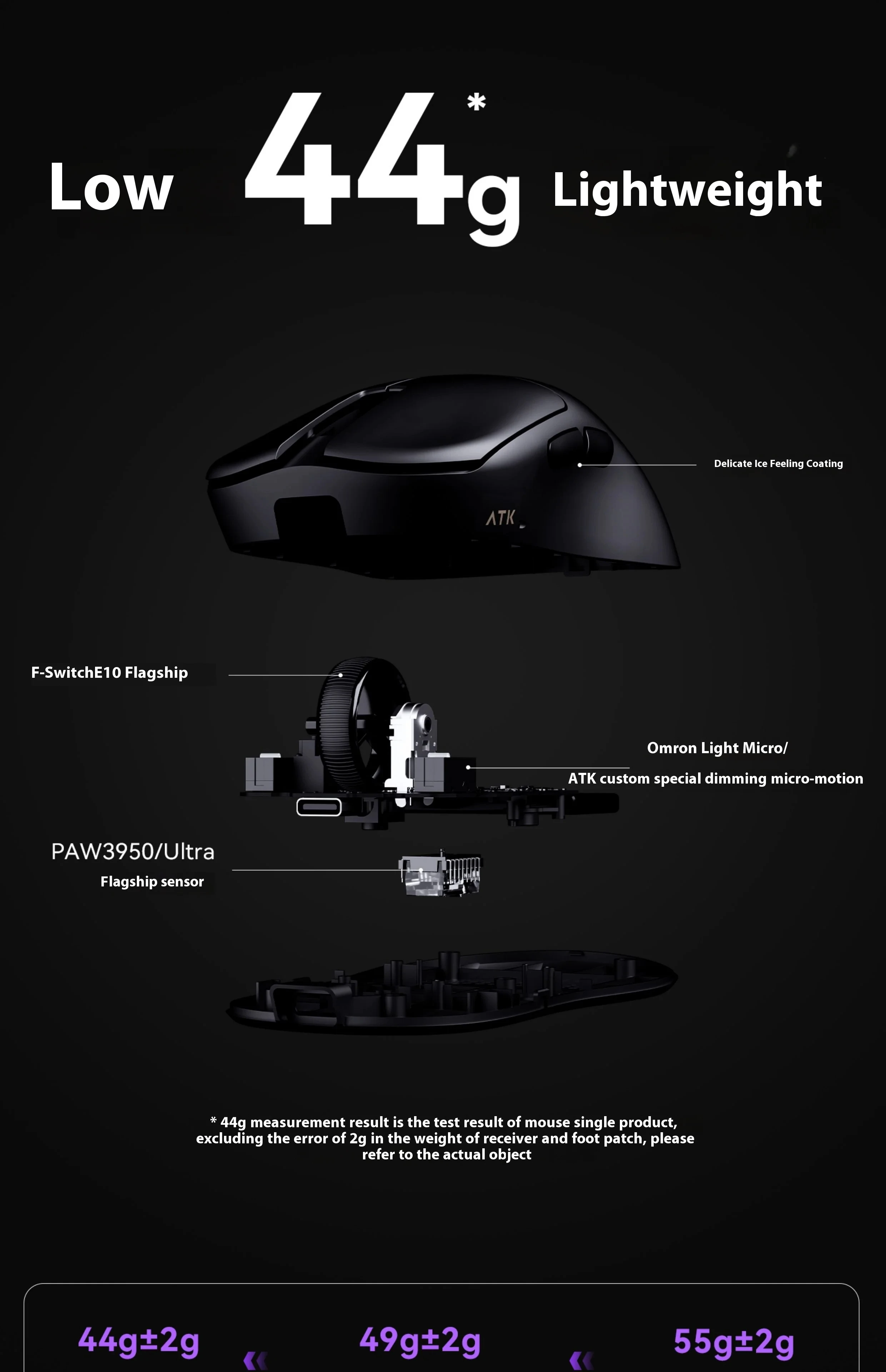 3. Nordic 52840 Flagship Controller: В комбинация с ATK Competitive Firmware MAX, той разгръща потенциала на мишката. Средното забавяне на бутоните е измерено на едва 0,3993 ms, далеч под стандартното за индустрията решение от 1,82301 ms.