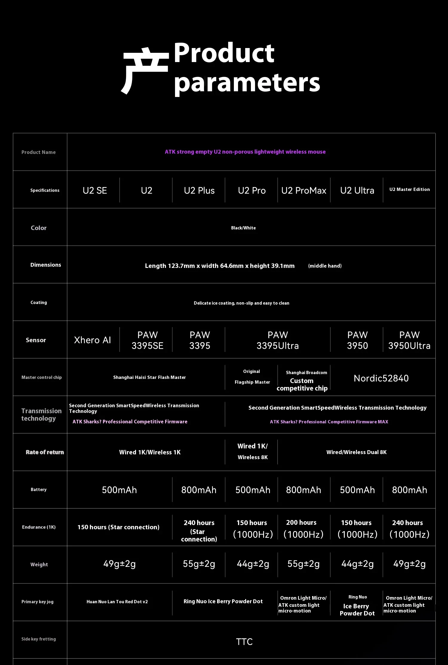 НОВА ATK BlazingSky U2 НАЛИЧНА PAW3950 8k безжична геймърска мишка 3 режима Ultra Double 44g лека мишка за електронни спортове, персонализиран аксесоар