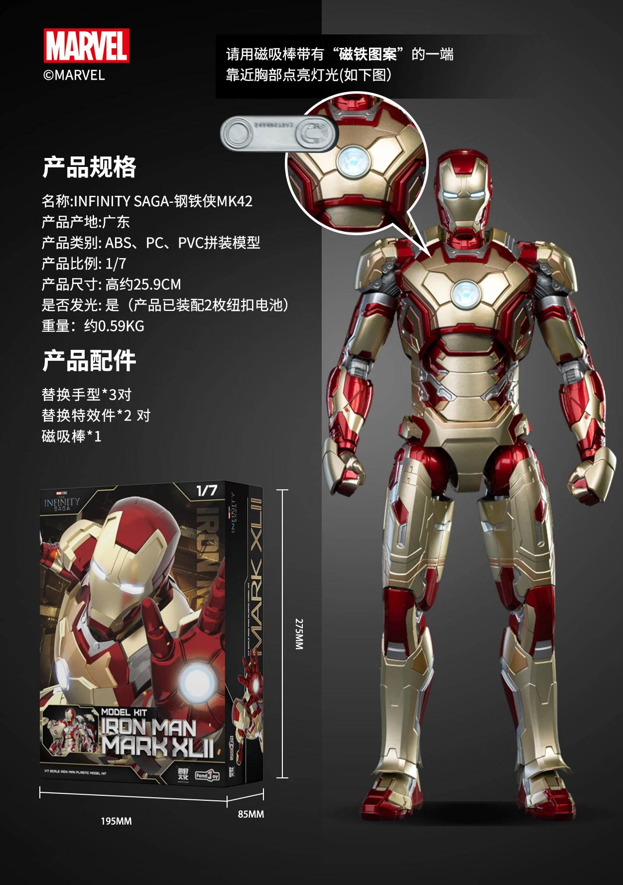 1/7 Fondjoy Marvel Iron Man Mk42/43/46 Modellbausatz, offizielle lizenzierte Sammlerfigur mit Sockel, für Jungen, Erwachsene, Fans, Geschenke