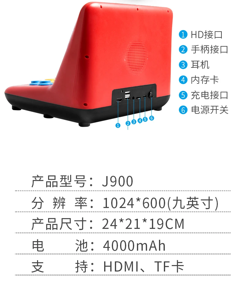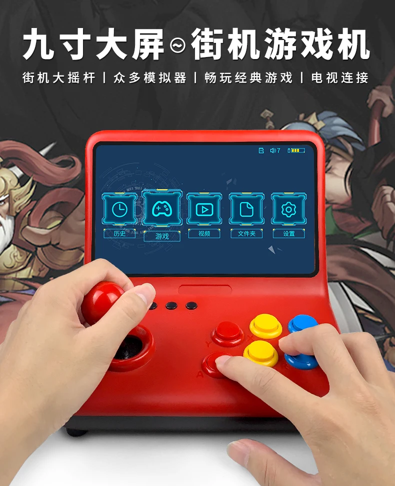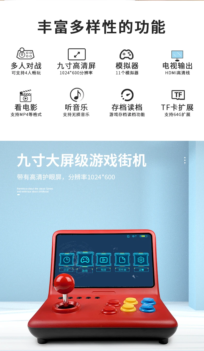 10-Zoll-Desktop-Mini-Joystick-Handheld-Konsole mit Retro- und Nostalgie-Design Hochauflösende 9-Zoll-IPS-Arcade-Spielkonsole