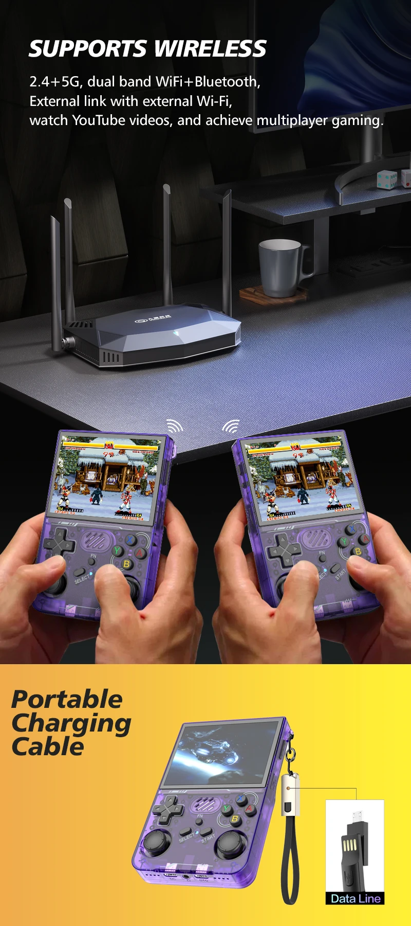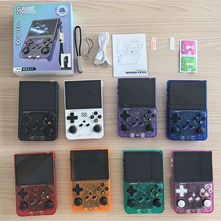 100 % ArKOS R36XX Retro-Handheld-Spielkonsole, Linux-System, 3,5-Zoll-IPS-Bildschirm, 64/128 GB/256 GB, aktualisierte Version, Schwarz