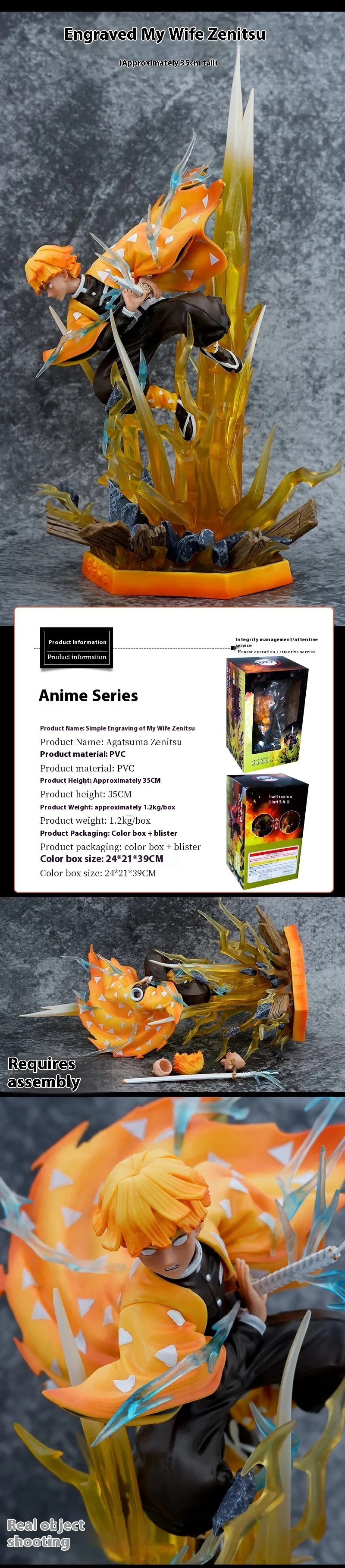 35CM Demon Slayer Figur Agatsuma Zenitsu Doppelköpfe mit LED Anime Statue PVC Action Figur Dekoration Modell Spielzeug Weihnachtsgeschenk