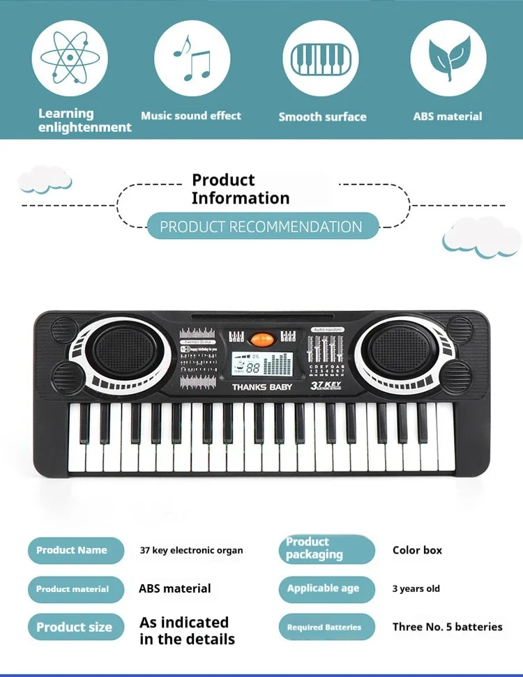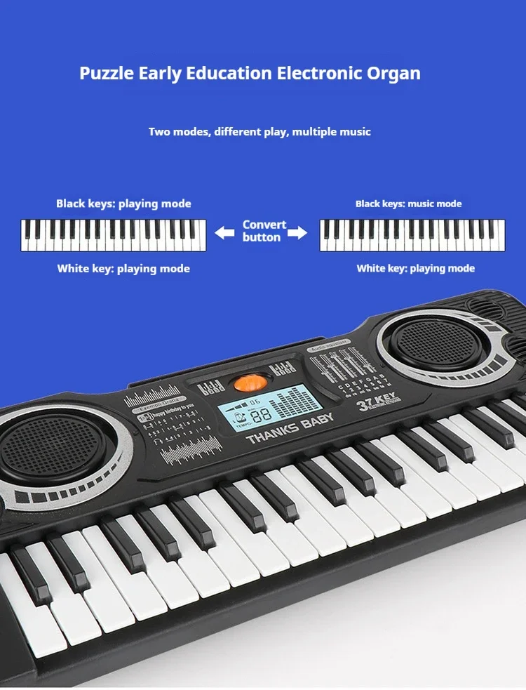 Tragbare digitale Klaviertastatur mit 37/61 Tasten für Anfänger, Musikspielzeuginstrument für Kinder, pädagogisches Entwicklungsgeschenk für Kinder