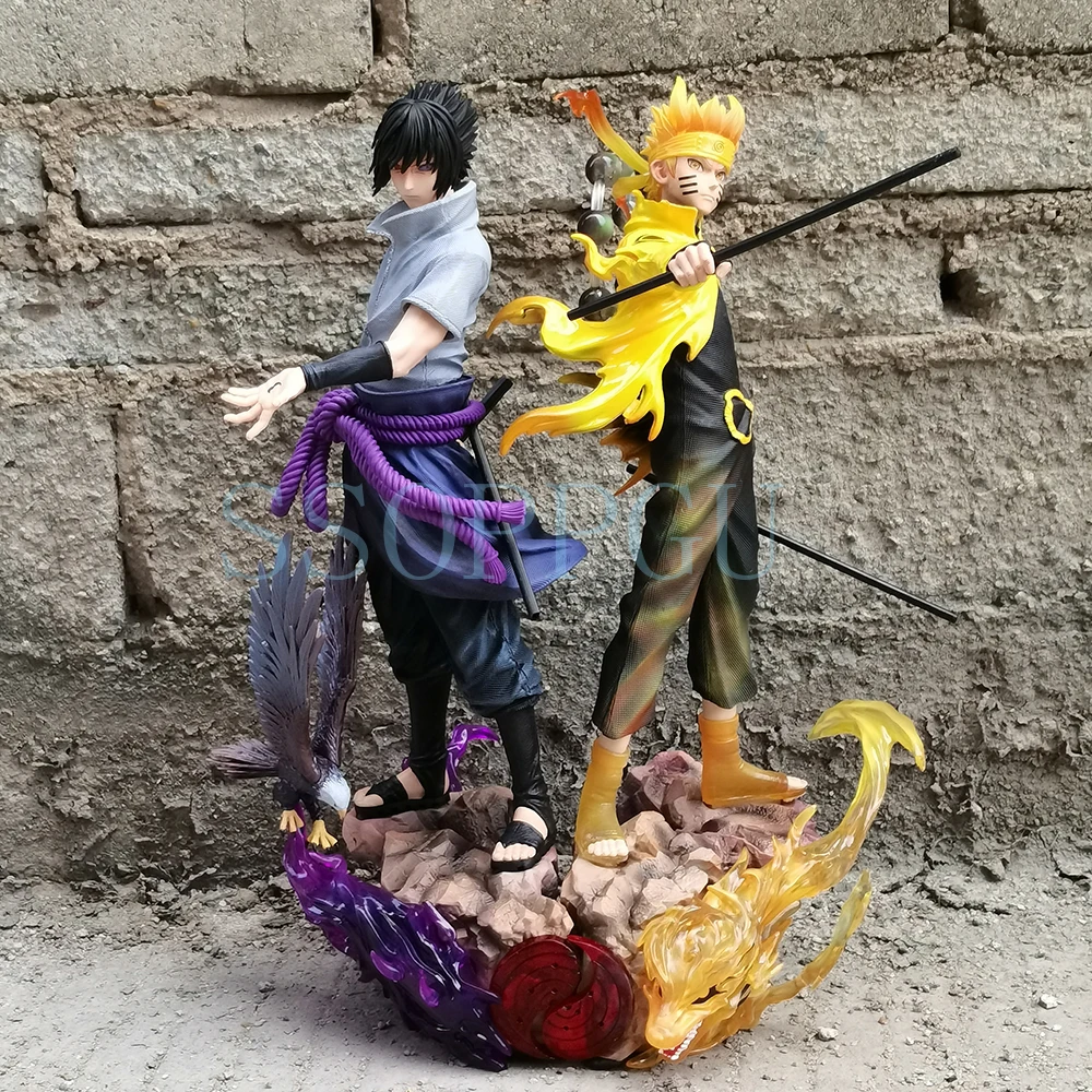 42 cm große Naruto Shippuden Figur Naruto Uzumaki Uchiha Sasuke Japanische Anime PVC Actionfigur Spielzeugstatue Sammlermodell Puppe Geschenk