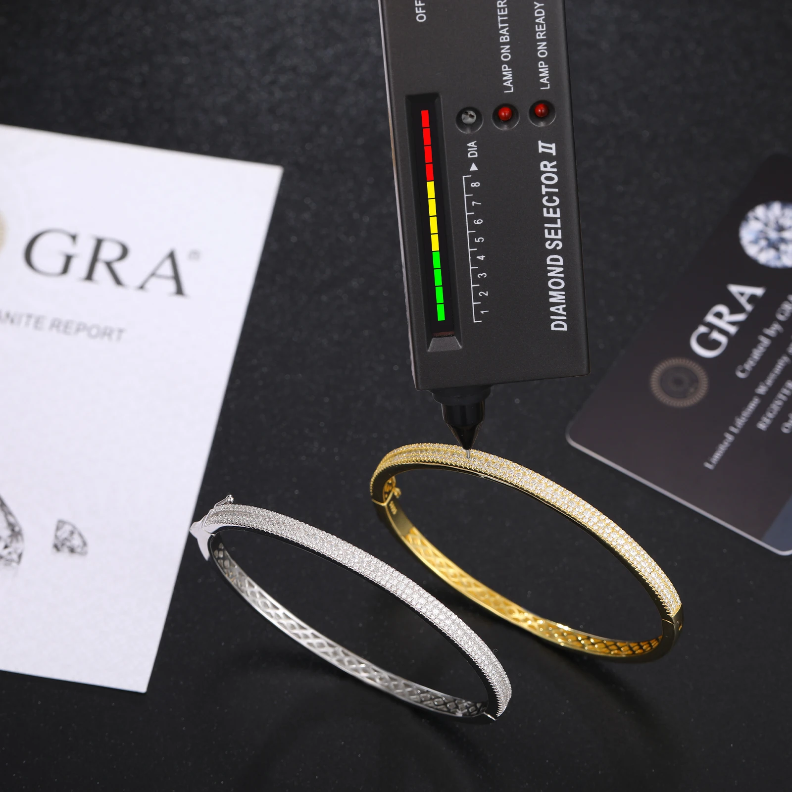 4MM D VVS 3-reihiger Moissanit S925 Manschettenarmreif für Männer Sterling Silber Micro Pave Fassung Bling Luxus Hip Hop Schmuck Geschenke