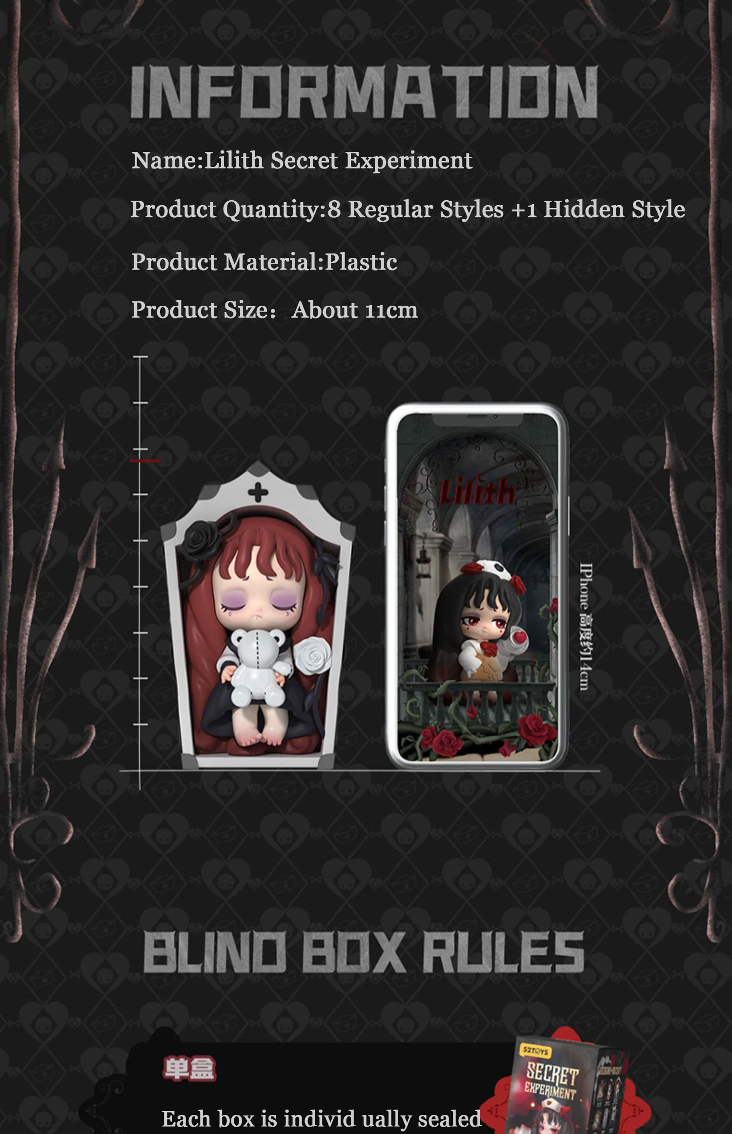 52TOYS Lilith Secret Experiment Series Blindbox Spielzeug Puppe Niedliche Anime Actionfigur Ornamente Figuren Puppen Desktop Home Decor