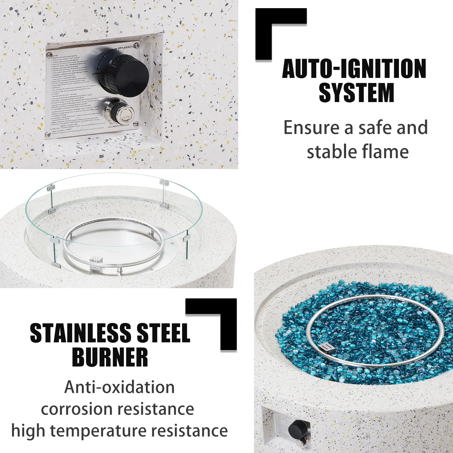 56 x 28 Zoll große graue Feuerstelle, Propan-Feuertisch-Set für den Außenbereich, rechteckiger Beton (50.000 BTU) mit 20 lb Tanktisch, Windschutz