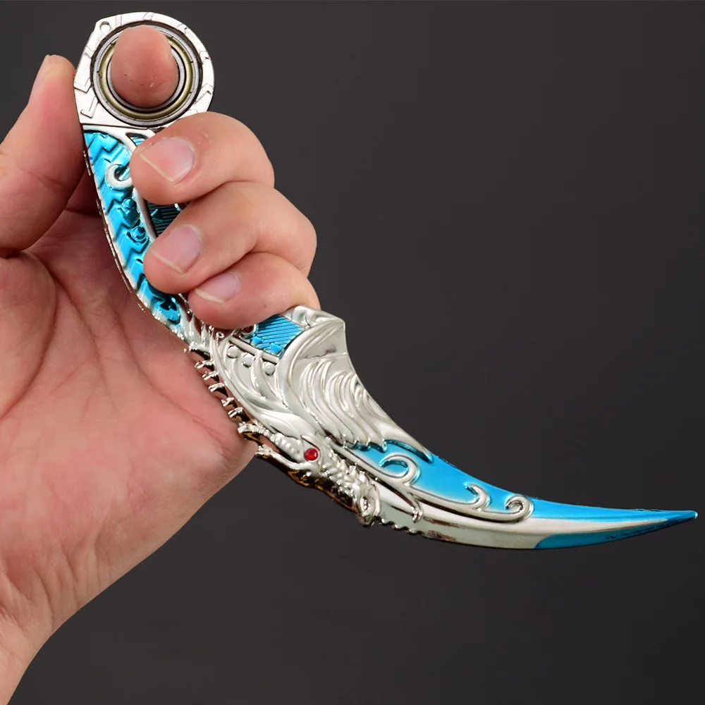 6,7 Zoll chinesischer Drache Karambit Metall Dark Moon Double Thorn Modell Spiel Leben und Tod Peripheriegeräte Golden Dragon Claw Knife Toy