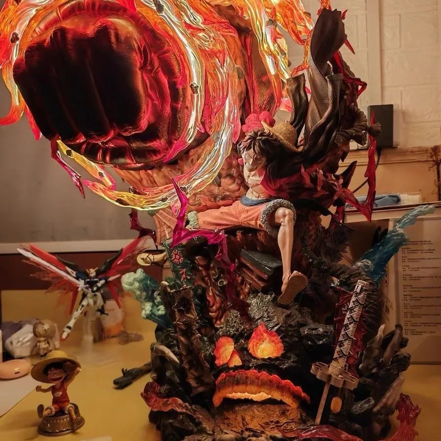 60 cm große LED-Anime-Figur von Luffy aus One Piece (GK Gear 5 Monkey D. Luffy) – Actionfigur, Statue, großes Karma-PVC-Sammlermodell, Spielzeug, Geschenk