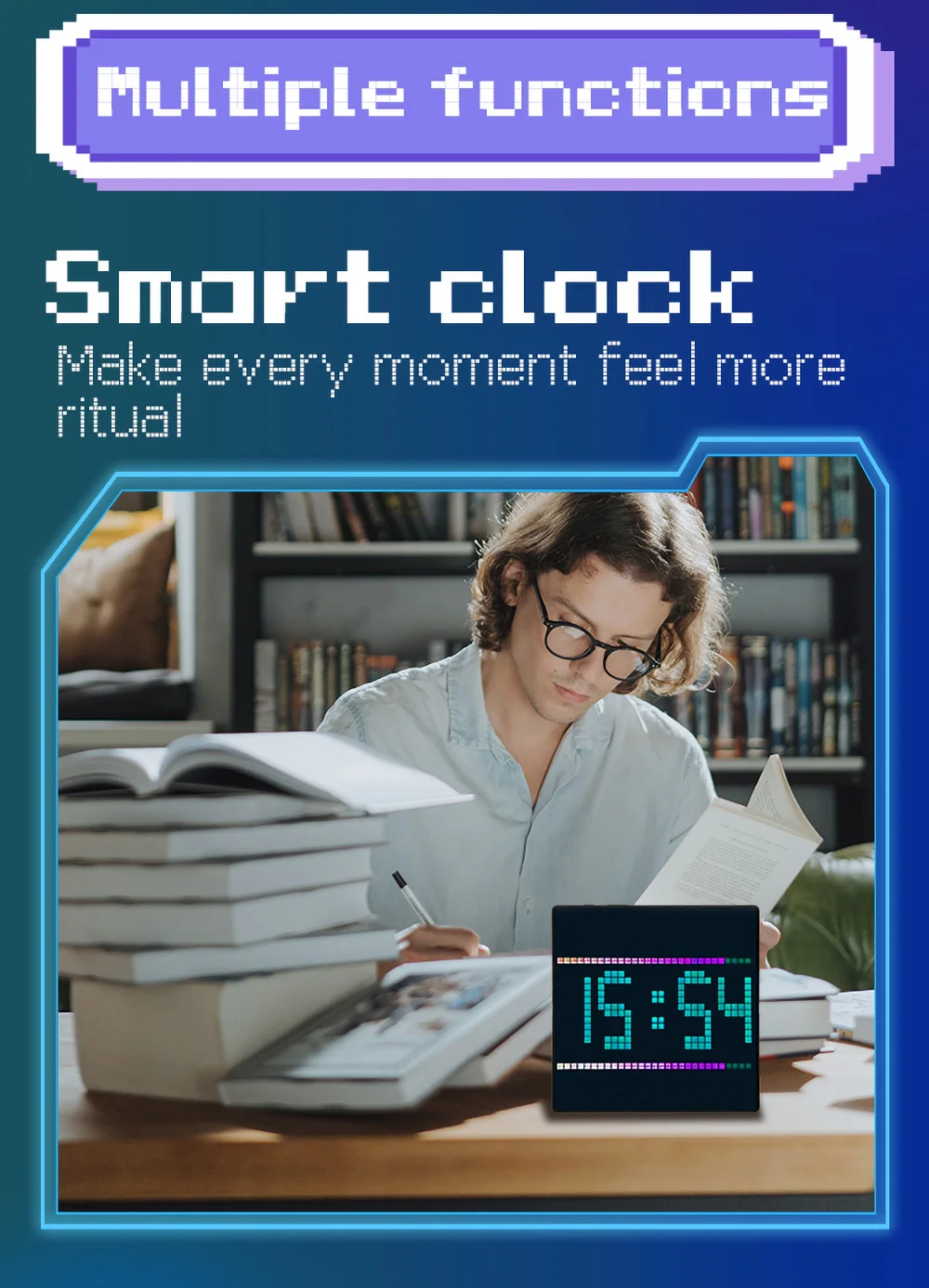 【Pixel kennenlernen】 Der Pixel Art Digital Frame ist ein unterhaltsames und nützliches Stück Technologie. Sie können das Pixel Display als intelligente Wanduhr verwenden, Wetter und Temperatur anzeigen, es als Lampe oder Musikvisualisierer verwenden, aber am meisten Spaß macht es mit Abstand, Pixel Art anzuzeigen, das Sie mit der App selbst gestalten oder von echten Pixel-Künstlern herunterladen können, die einige erstaunliche, lustige und schöne Animationen erstellt haben.