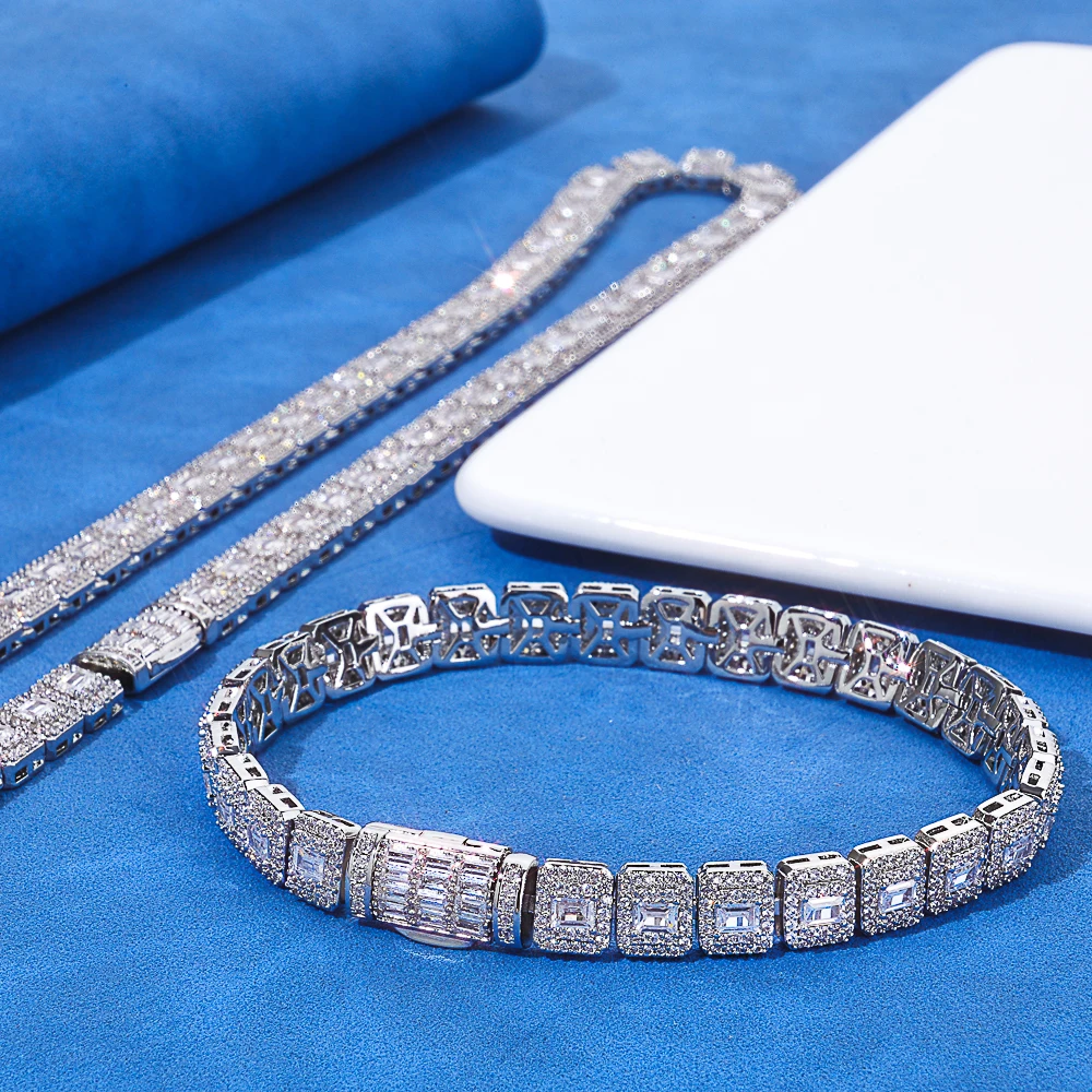 7,5 mm Armband Hip Hop Herren Rock Sugar Cuban Chain Funkelnder Tennis Cluster Diamant Vergoldete Halskette Damen Geschenke