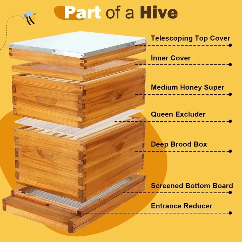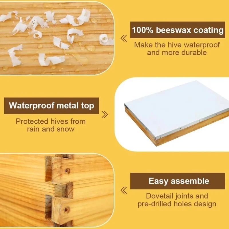 Bienenstock-Set mit 8 Rahmen und in Bienenwachs getauchtem Siebboden – Starter-Bienenstockkästen für die Bienenzucht