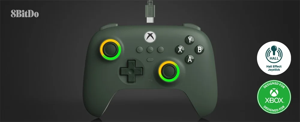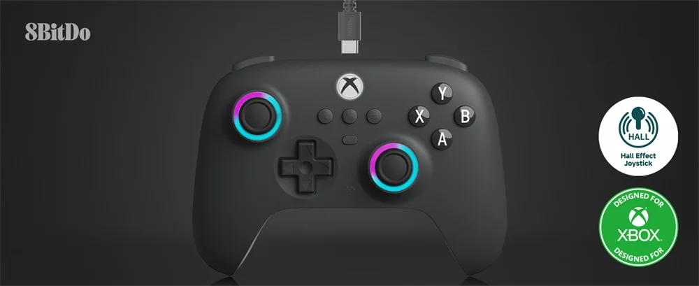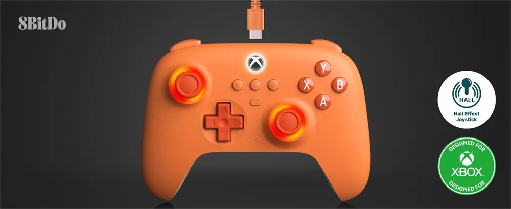 8BitDo Ultimate C Wired Controller for Xbox Series X S, Xbox One, PC Windows 10 11 with Hall Effect and RGB Lighting Fire Ring