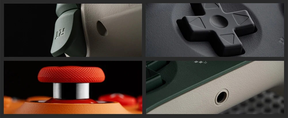 3.5mm audio jack. Wear-resistant metal joystick rings. Upgraded bumpers and D-pad.