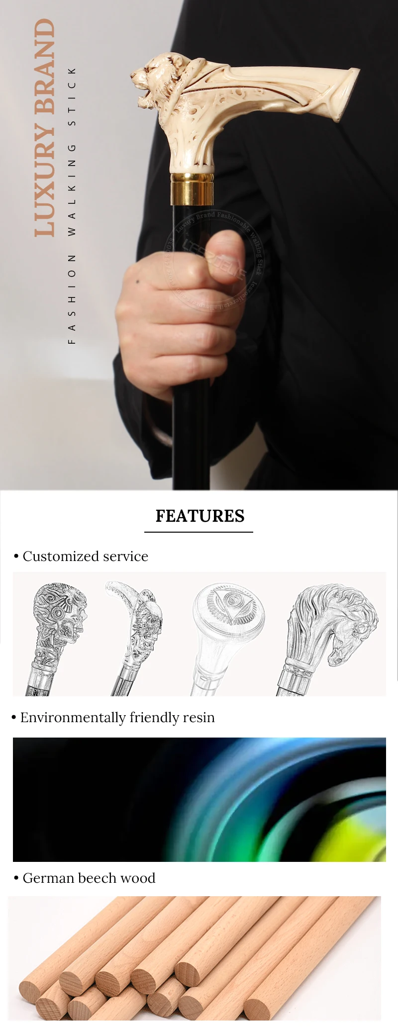 96 cm Tigerkopf mit luxuriösem Mustergriff, schwarzer Stock, Herren, deutscher Buchenholz-Gehstock, Damen, modische dekorative Stöcke