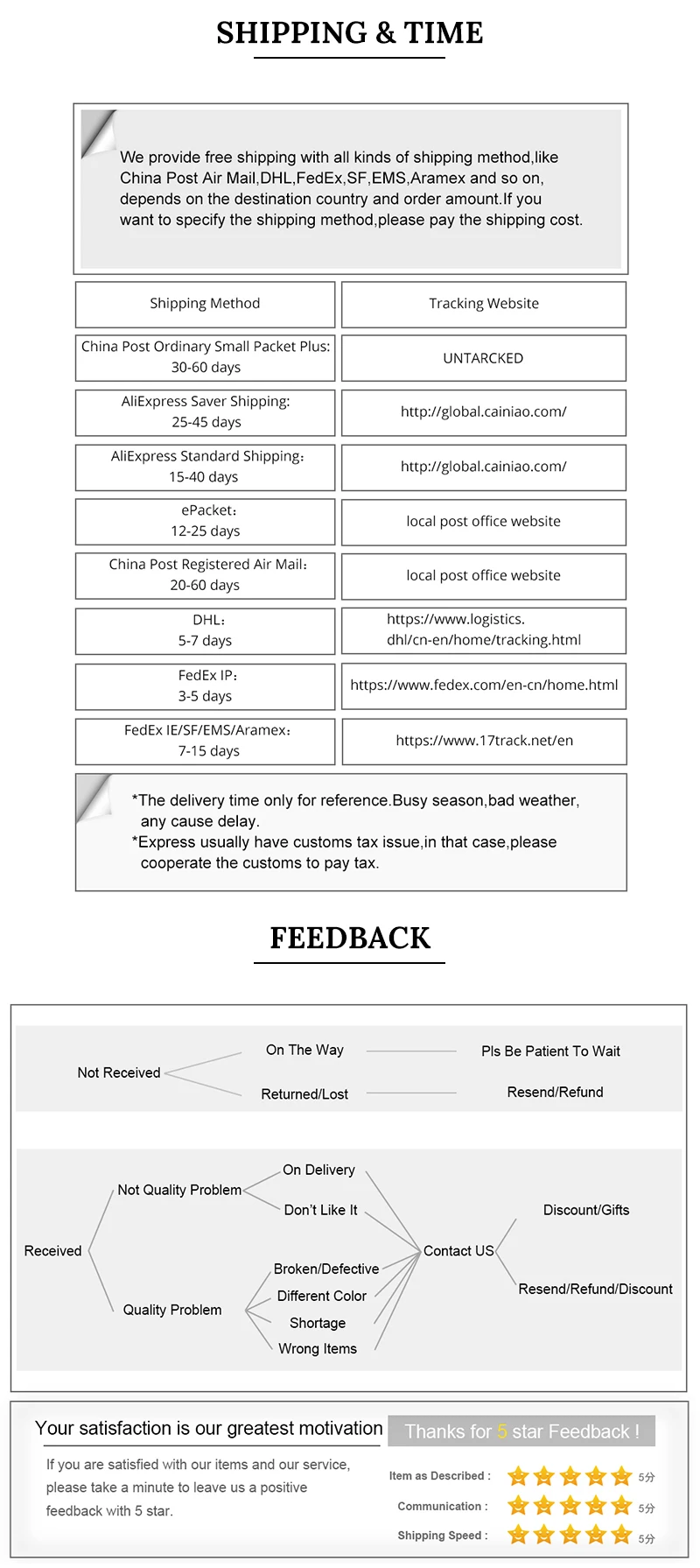 Wenn Sie eine Größe benötigen, die länger als die Standardlänge ist (z. B. mehr als 1 Meter = 39,37 Zoll), kontaktieren Sie uns bitte vor der Bestellung. Wir teilen Ihnen die genaue Produktionszeit und die zusätzlichen Kosten mit, nachdem wir die Größe bestätigt haben.