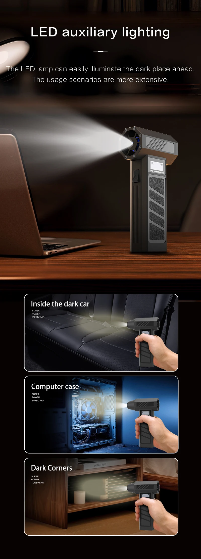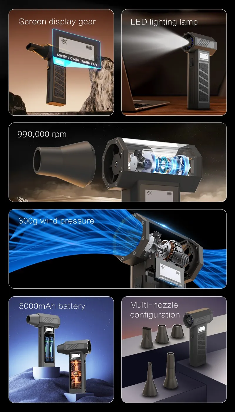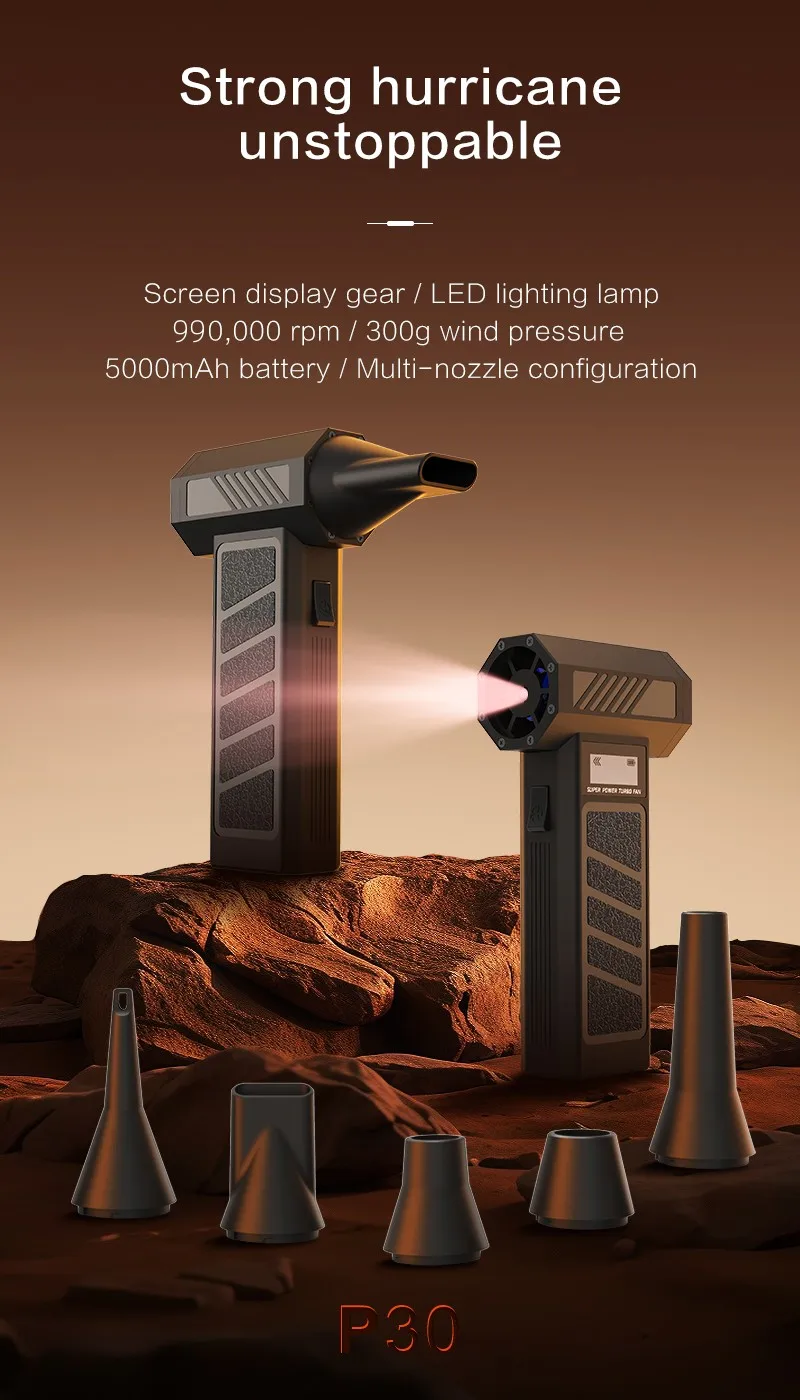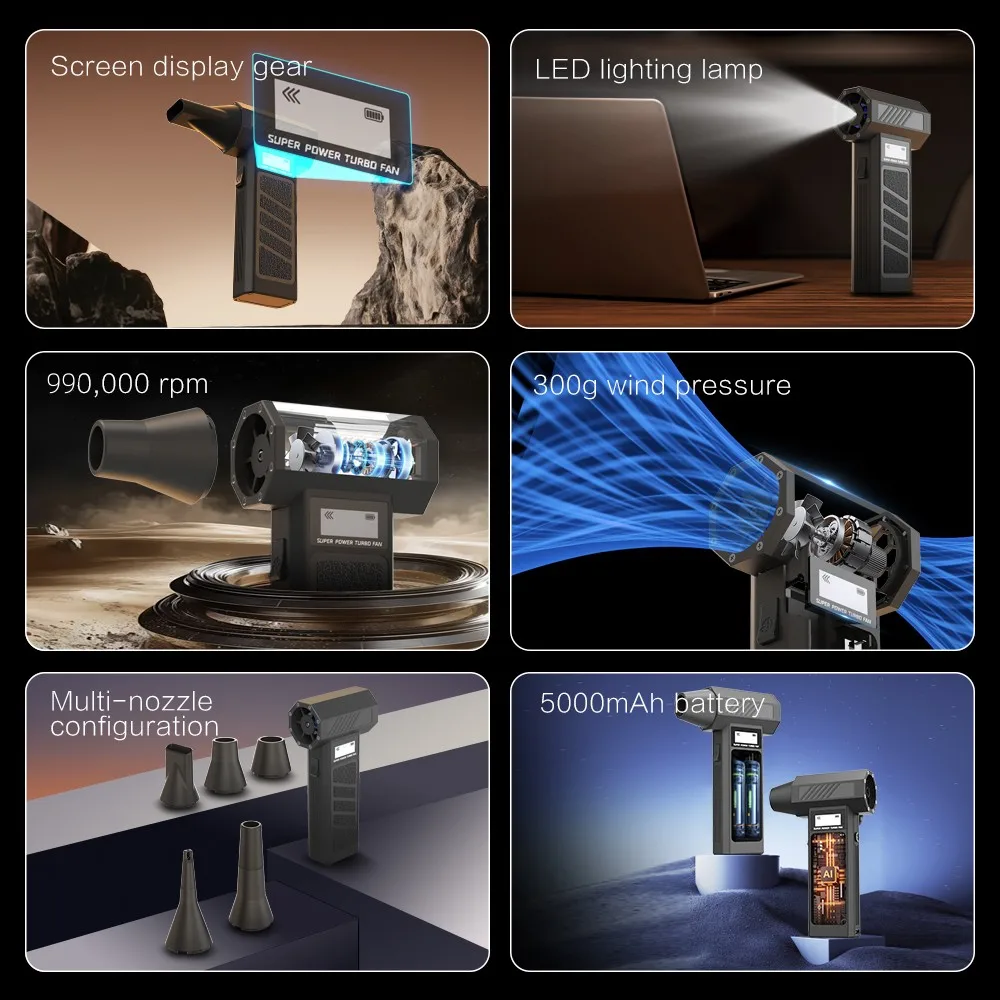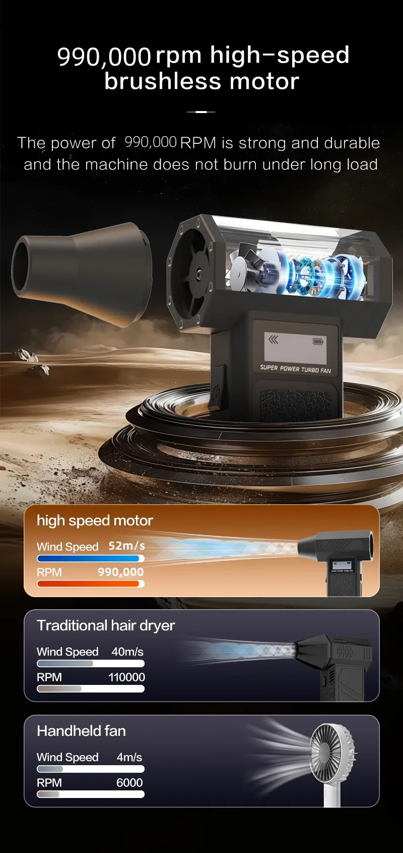990.000 U/min Hurricane-Staubgebläse Kabelloser Druckluft-Staubwedel Hochgeschwindigkeits-Violent-Ventilator 4-Gang-Turbo-Jet-Gebläse