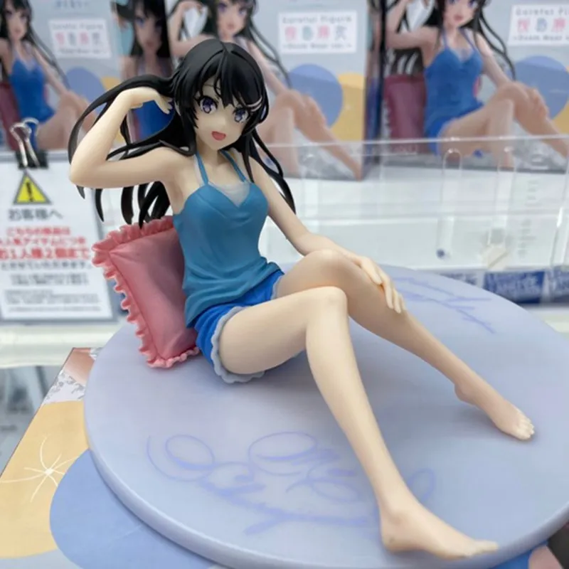 9CM Anime Figur Sakurajima Mai Blaue Hosenträger Shorts Loungewear Sitzend PVC Boxed Modell Sammlung Geschenk Ornament Dekoration