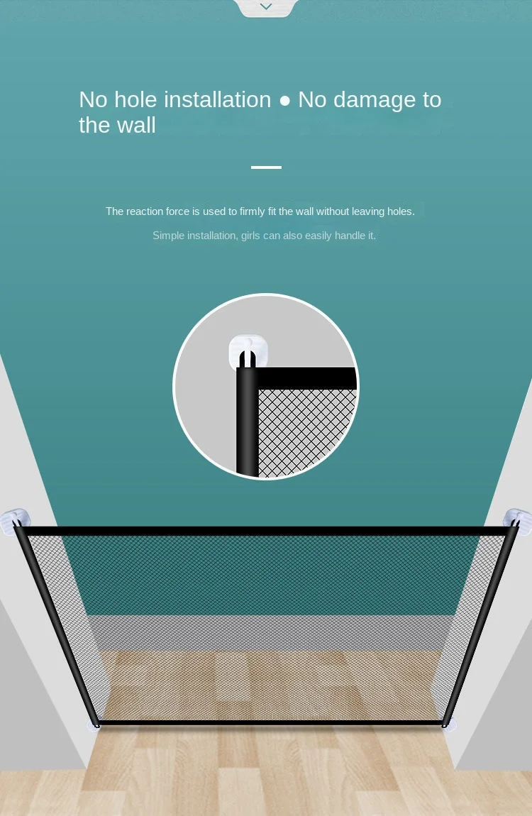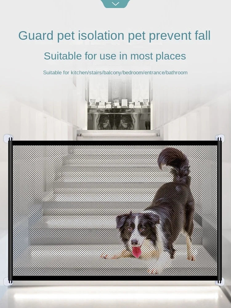 Adjustable No Drill Pet Gate - Anti-Cat Barrier with Mesh Panel Indoor Safety Fence for Dogs Cats Staircase & Doorway Protection