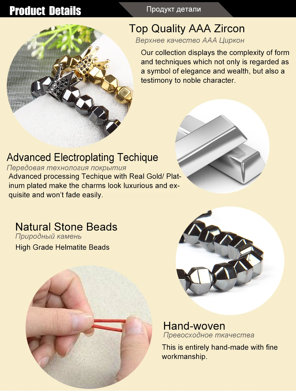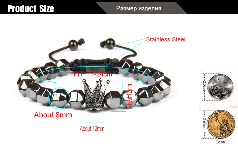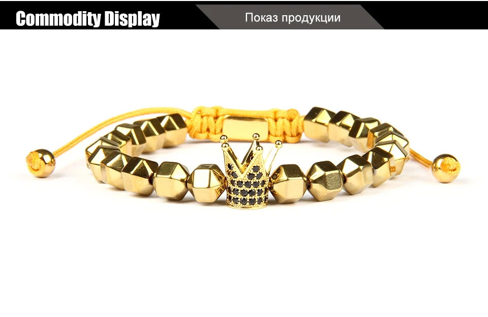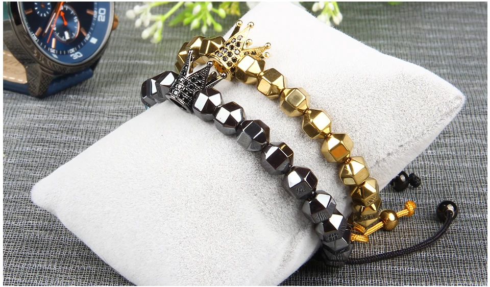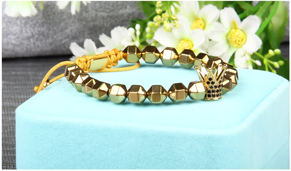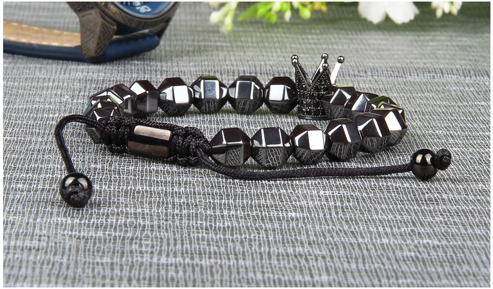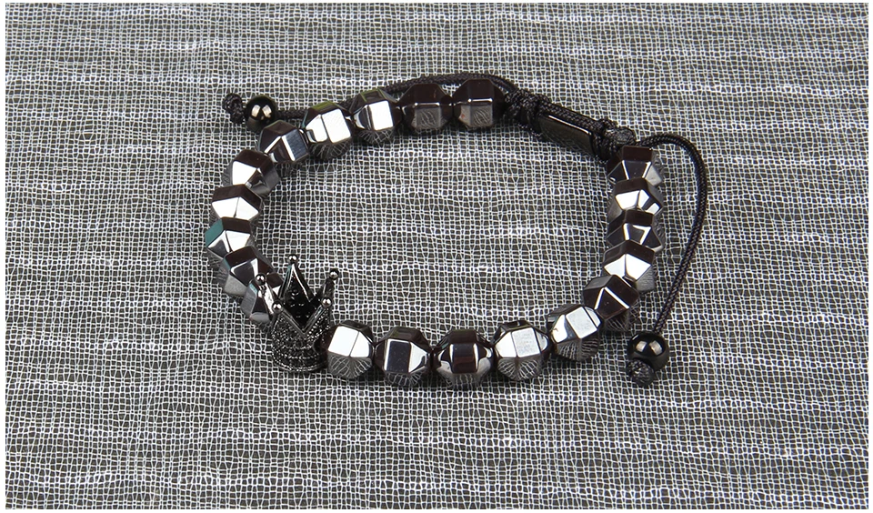 Ailatu 10 teile/los Crown Armband Schwarz Hämatit Perlen Macrame Pulseira Masculina Schmuck Anpassbare Stil und Laser Logo