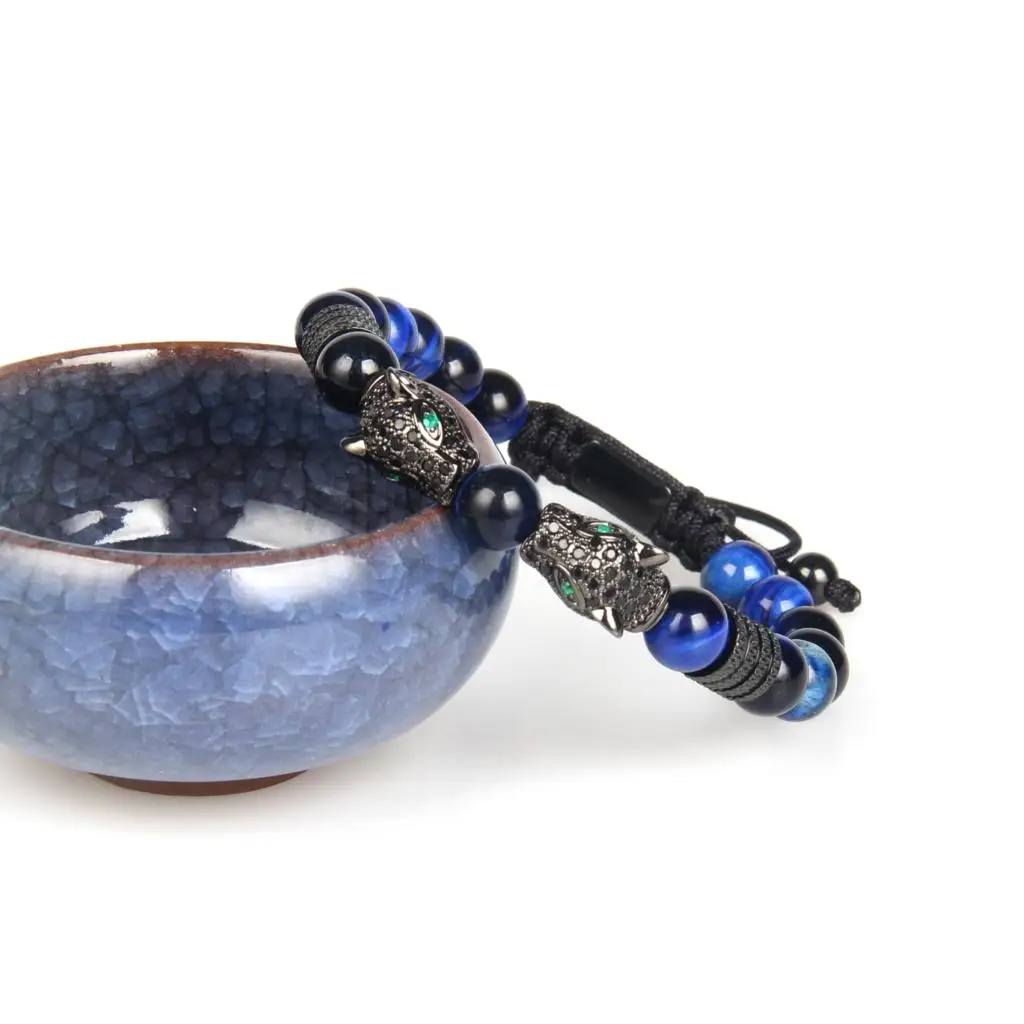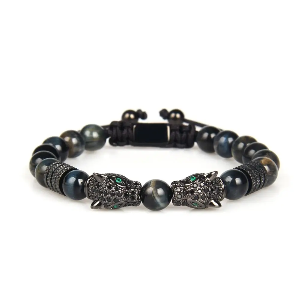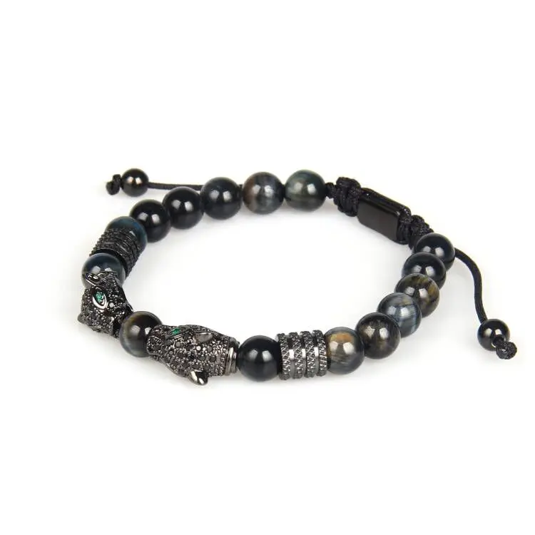Ailatu 10 teile/los Doppel Panther Kopf Handarbeit Armband Edelstahl Perlen Kupfer Leopard Schmuck Kostenlose Logo Service