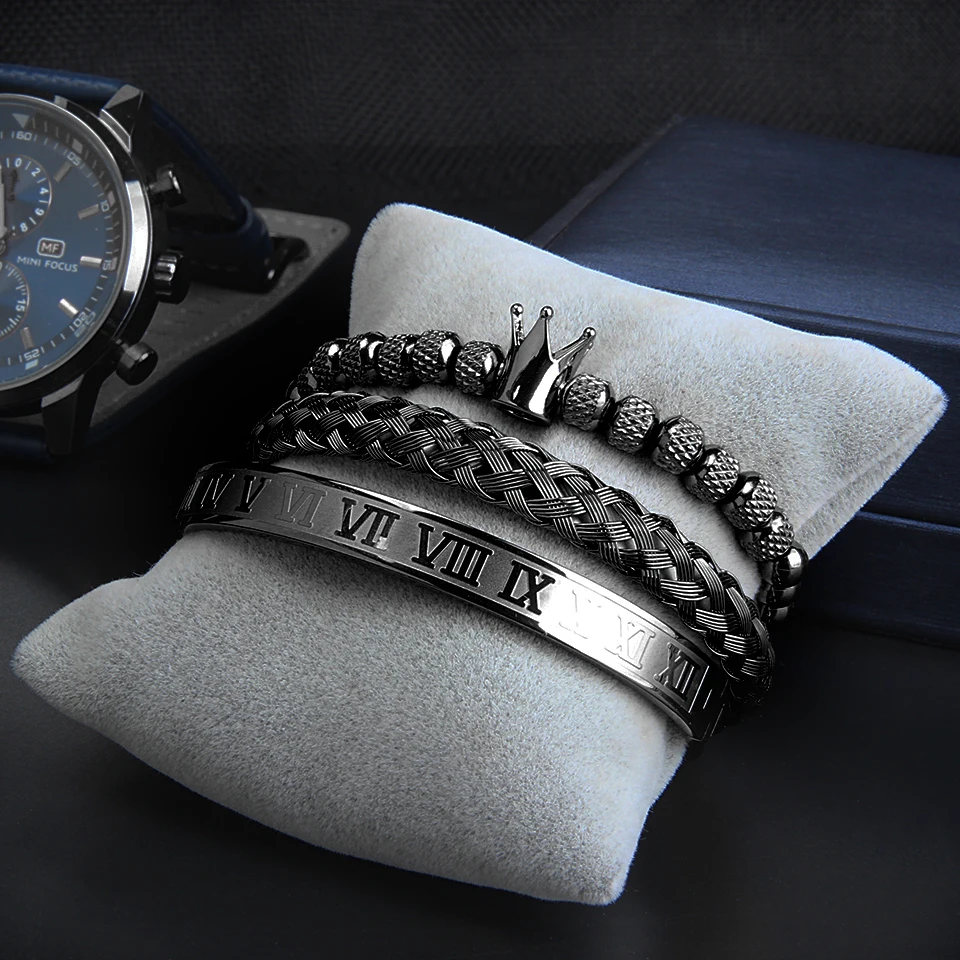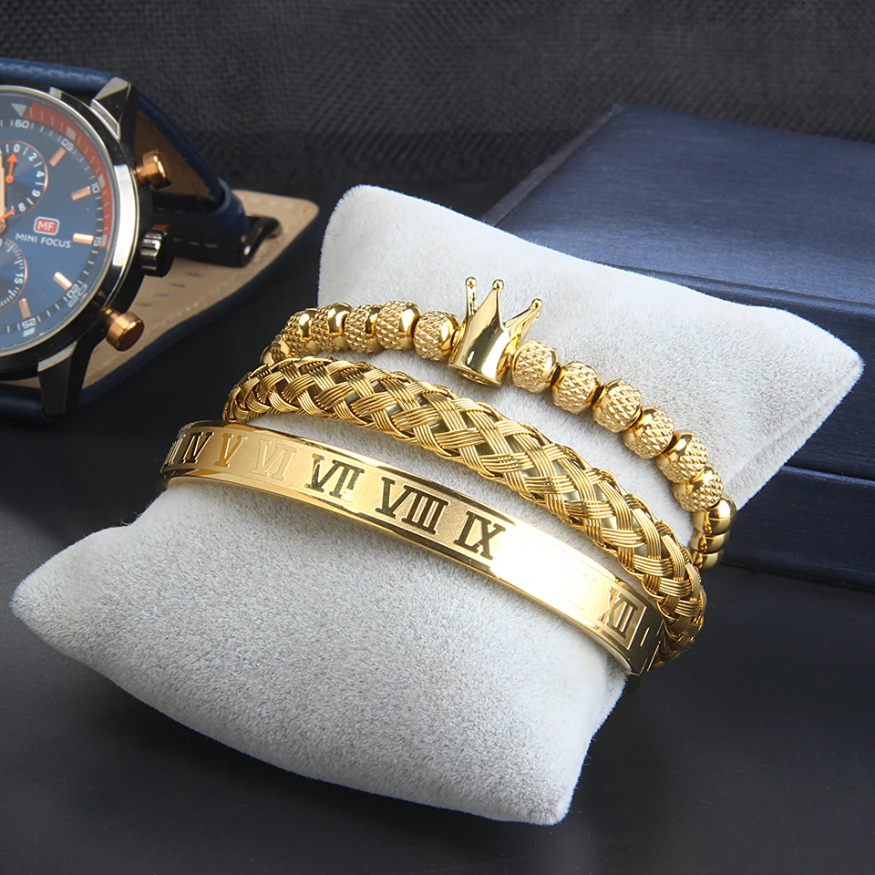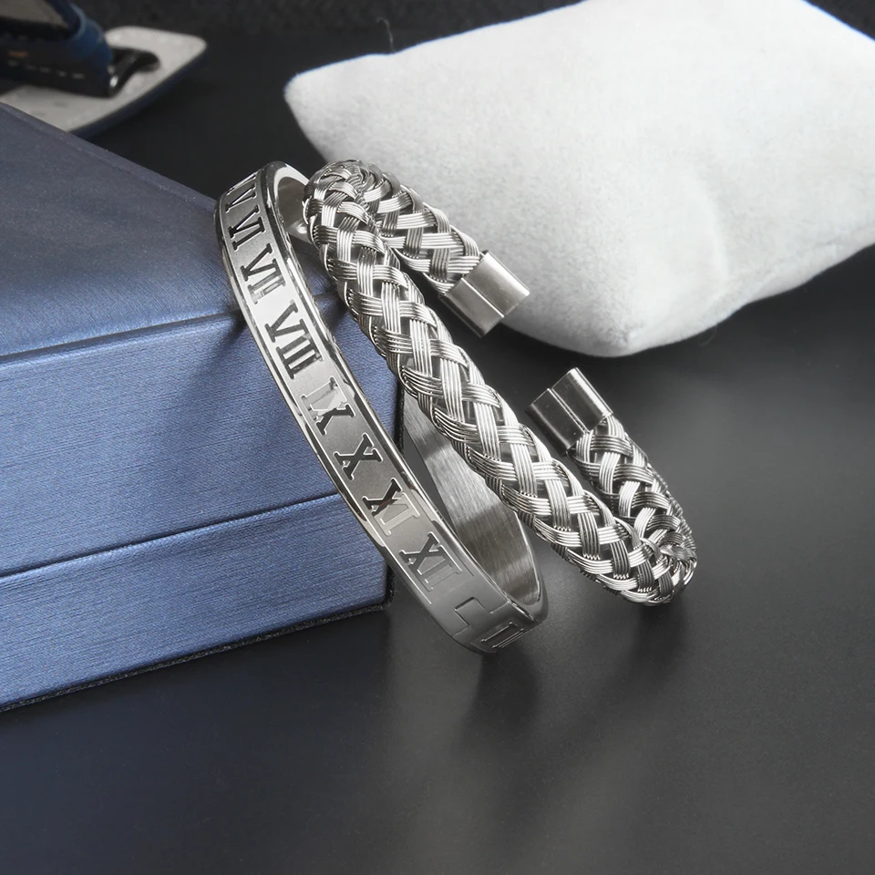 Ailatu 5 Sets Edelstahl Römische Zahl Armreifen Männer Geflochtene Energie Krone Armband Freundschaft Schmuck Kostenloser Logo Service