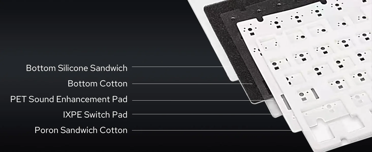Erleben Sie ein Tippgefühl wie nie zuvor mit unserem dichtungsmontierten Design in Verbindung mit einer Flex-Cut-PC-Platte und -Platine. Die Dichtungsmontage isoliert Platte und Platine vom Gehäuse und reduziert so Vibrationen und Geräusche deutlich. Gleichzeitig ermöglicht das Flex-Cut-Design in PC-Platte und Platine ein leicht flexibles, aber dennoch stabiles Tippgefühl. Jeder Tastendruck ist gedämpft und präzise. Diese innovative Konstruktion sorgt für eine optimale Kraftverteilung, einen sanfteren Anschlag und einen individuell anpassbaren Tastenanschlag.