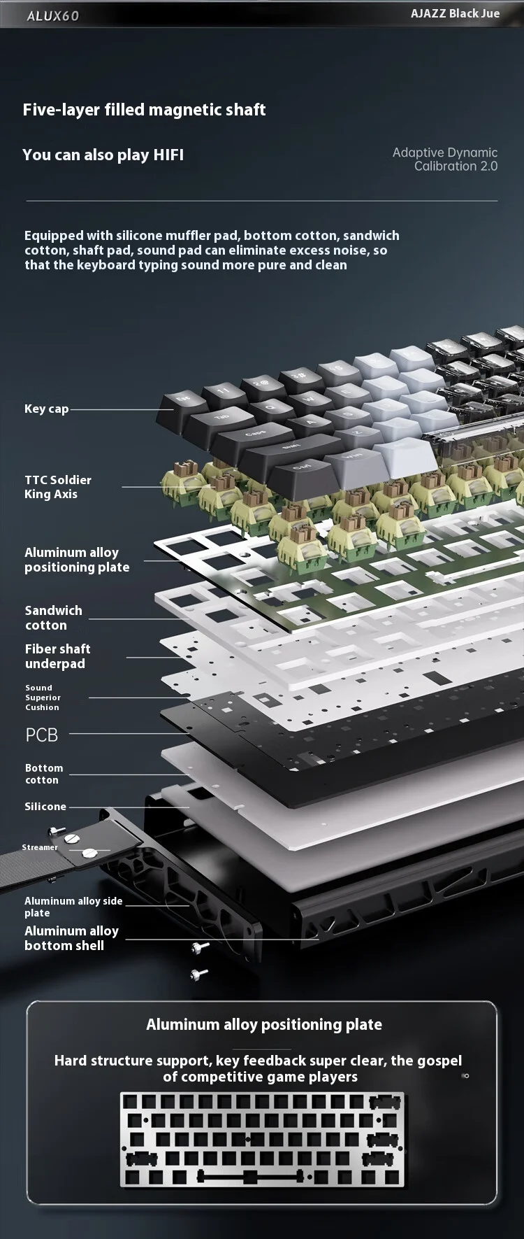 AJAZZ Alux60 Tastatur mit magnetischem Schalter, kabelgebundene Gaming-Tastatur, Aluminiumlegierung, 8000 Hz, RT0.01 mm, mechanische Tastatur, FPS, Gamer-Geschenke