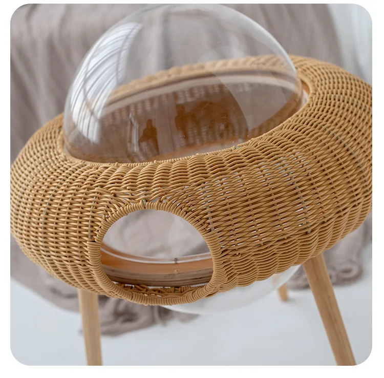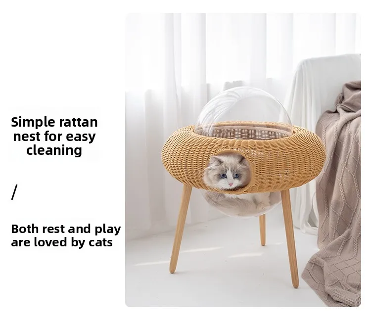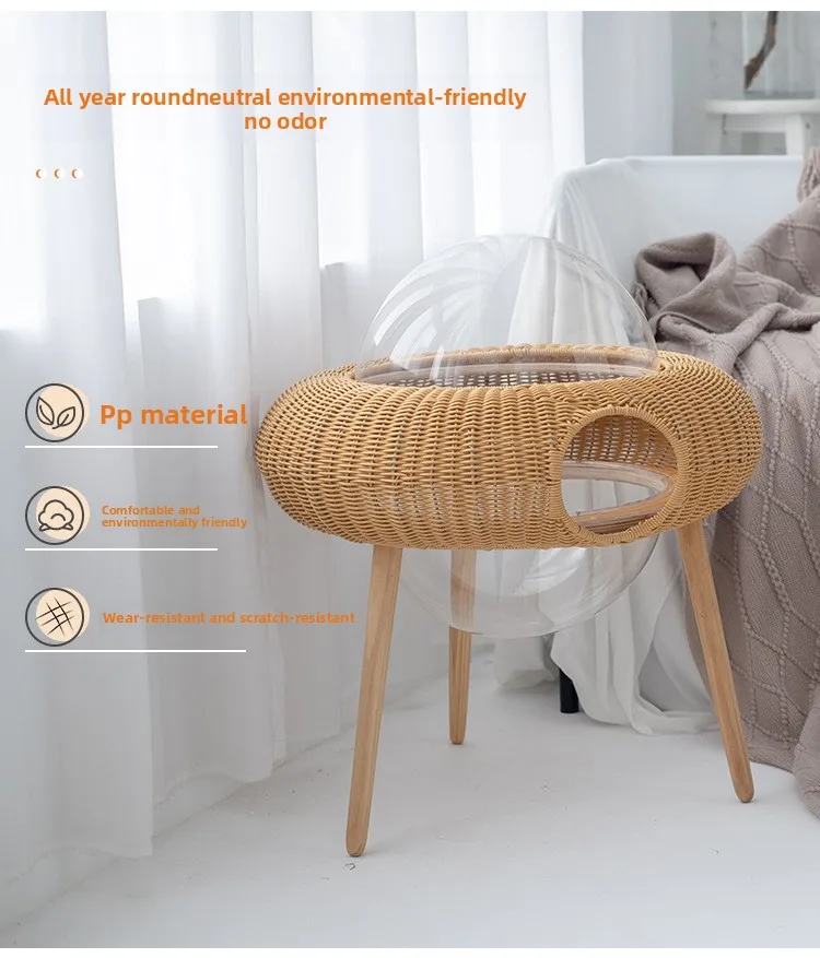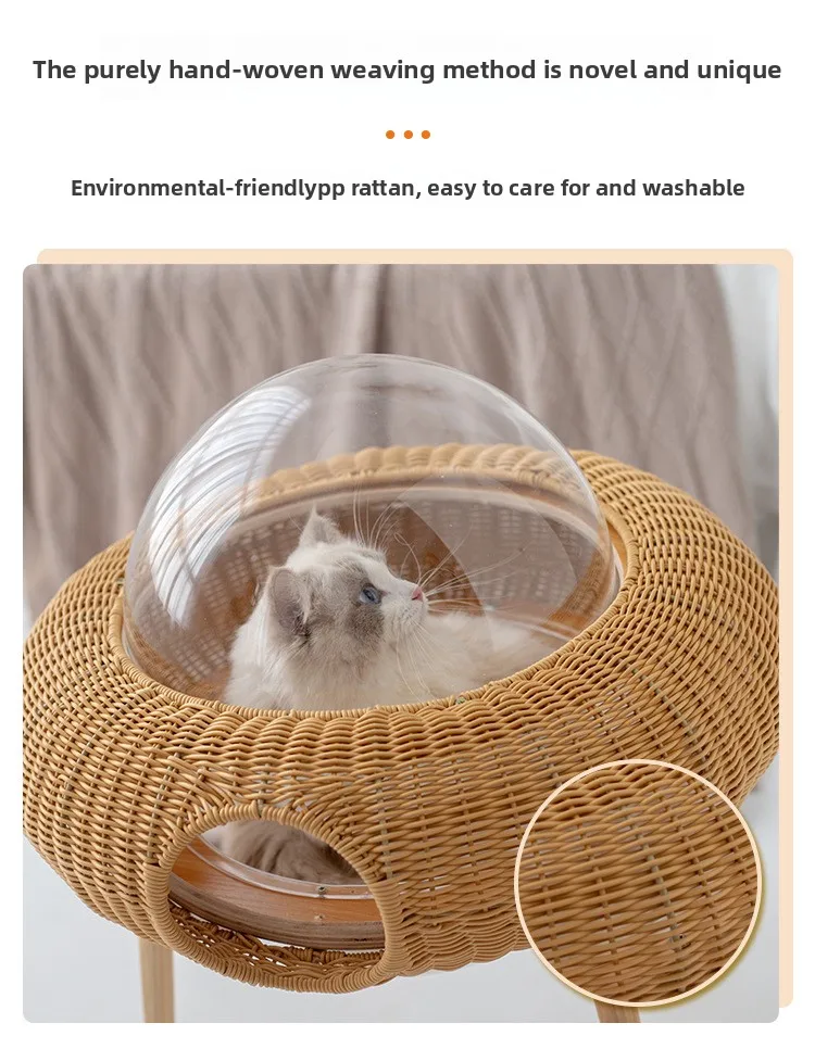 Ganzjahres-Katzenhängematte aus gewebtem Material, transparentes Katzennest mit handgefertigtem hängendem Haustierbett aus Rattan für den Innenbereich, atmungsaktiver Katzenkorb