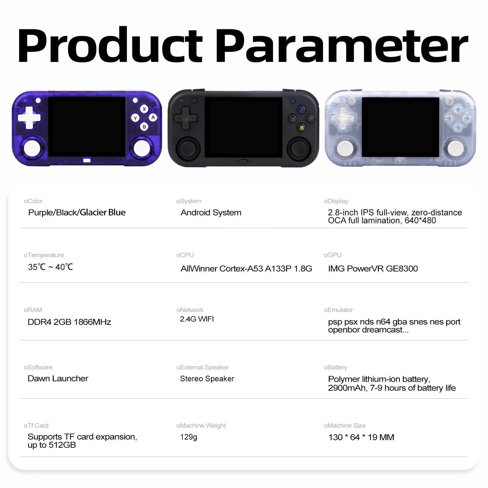 AMPOWN Mini Zero 28 Handheld Video Game Console 2.8'' IPS Screen A133P Processor Android OS 2.4GWIFI MAGICX ZERO28 Player Gifts