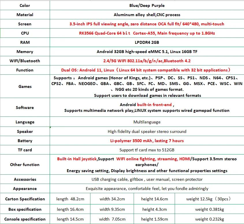 ANBERNIC RG353M Handheld Game Console 3.5 Inch Multi-touch Screen Dual OS Aluminum Alloy Shell HDMI-compatible WIFI Video Player