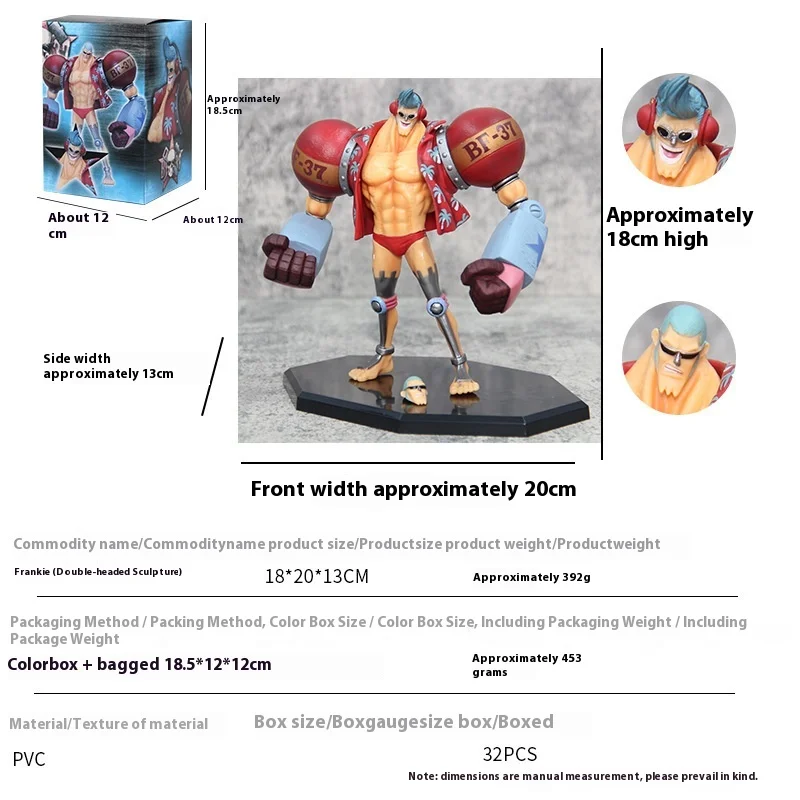 Anime One Piece 18 cm Figur Gk Franky Actionfiguren Doppelkopf Austauschbare PVC Sammlerstücke Dekoration Spielzeug Geschenk