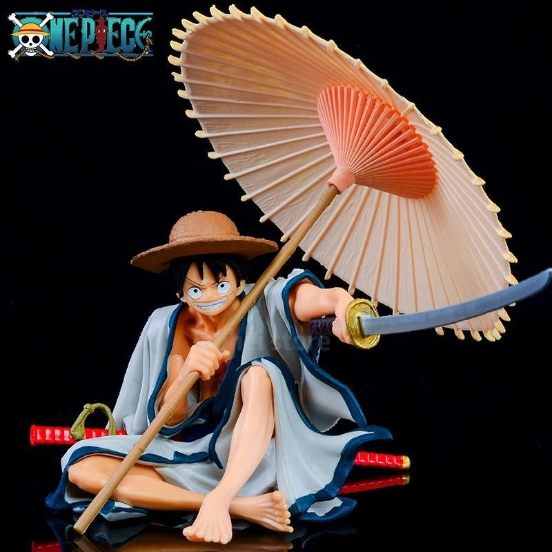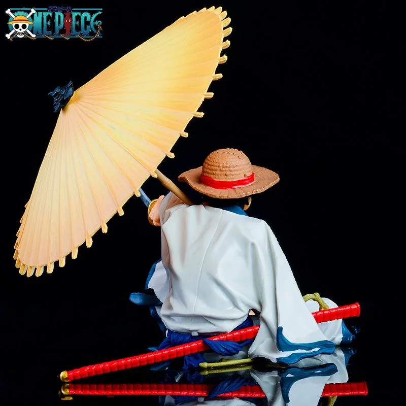 Anime One Piece Monkey D. Luffy Wano Country Kimono Dress Up Regenschirm Sitzend Modell Spielzeug Geschenksammlung Action Figur PVC
