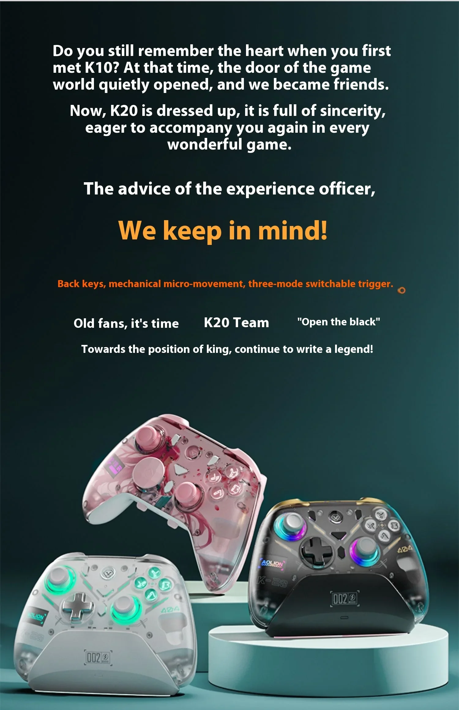 Aolion K20 Wireless Bluetooth Game Controller Gamepad With Hall Rocker Magnetic Replacement Shell For PC/NS/Android/IOS